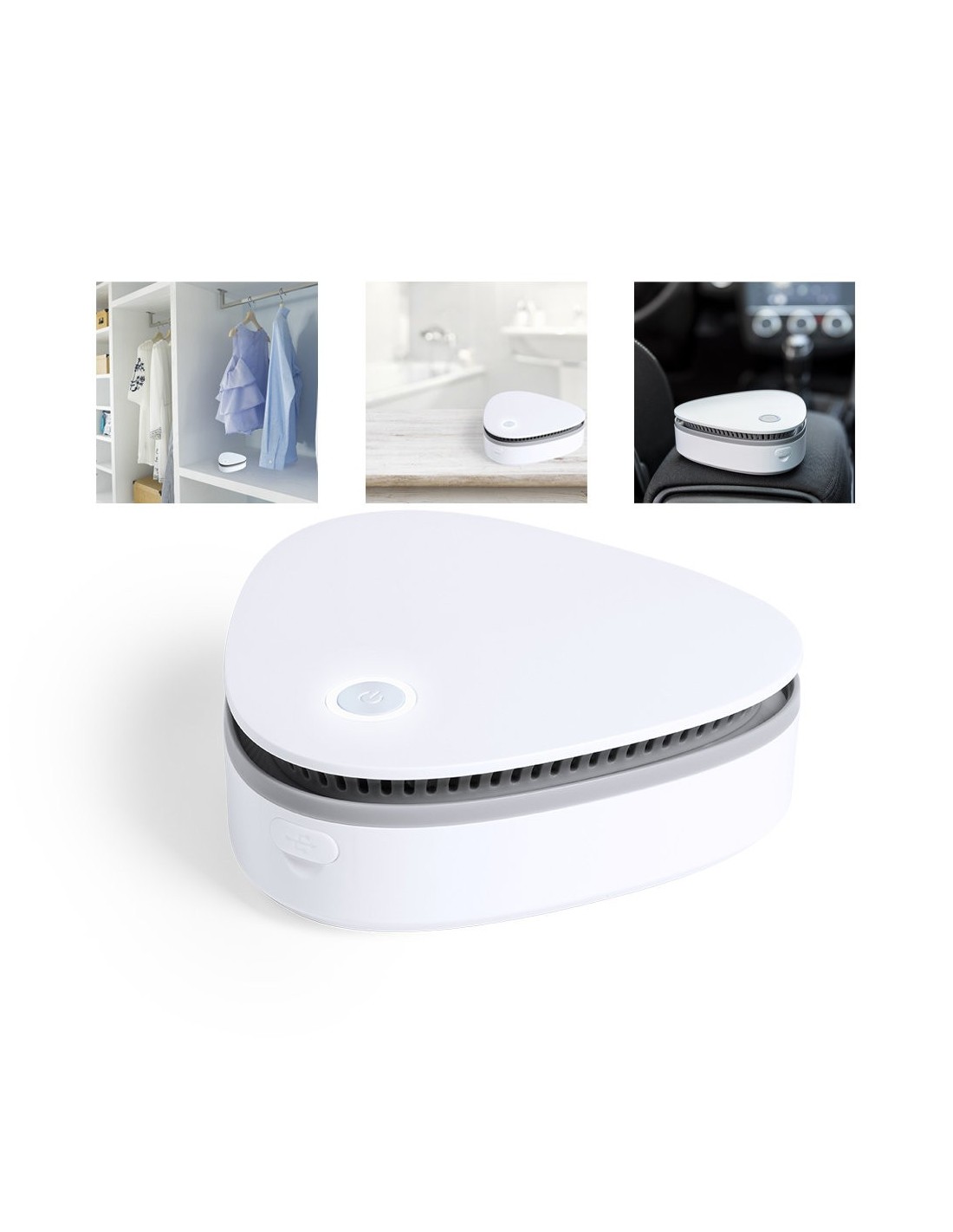 Generador de ozono de elegante y discreto acabado en color blanco sólido. Gracias al poder higienizante y desinfectante del ozono, se eliminan bacterias y otros microorganismos patógenos, eliminando también los malos olores del lugar tratado, siendo la estancia en el mismo más agradable y segura. Con dos modos de funcionamiento y recargable mediante cable USB (incluido), con batería de iones de litio de 1.800 mAh a 12V. Base antideslizante, presentado en atractiva caja de diseño. Disponible manual de instrucciones español e inglés. Disponible certificado RoHS, CE y de efectividad germicida.