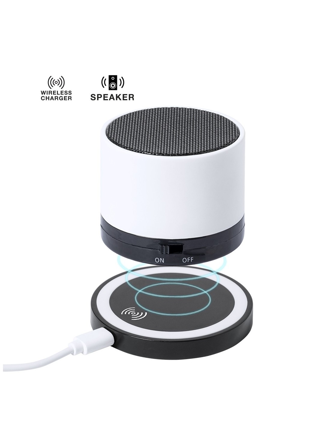 Altavoz Bluetooth® con base de carga inalámbrica 5W, compatible con dispositivos equipados con tecnología de carga inalámbrica. De diseño compacto y con conexión Bluetooth® 5.0 y 3W de potencia. Recargable mediante cable USB -de 150 cm incluido- y presentado en una atractiva caja de diseño. Disponible manual de instrucciones en español e inglés.