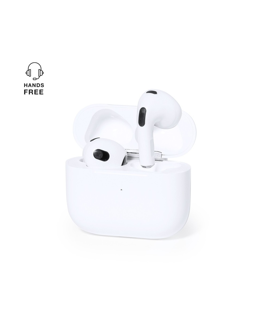 Auriculares intraurales con conexión Bluetooth® 5.3 y función manos libres. De diseño ergonómico, incluyen botón de control táctil integrado en el auricular, con base de carga a juego. Batería integrada de 300 mAh y presentados en caja individual de diseño kraft. Manual de instrucciones en español e inglés.