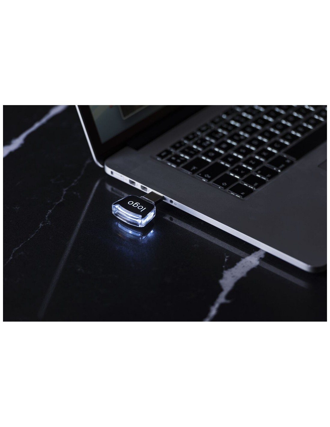 Memoria USB de 16GB de capacidad. De innovador diseño automovilístico, con luz led interior y cuerpo especialmente diseñado para marcaje en láser, iluminando así el logotipo. Presentada en estuche individual.