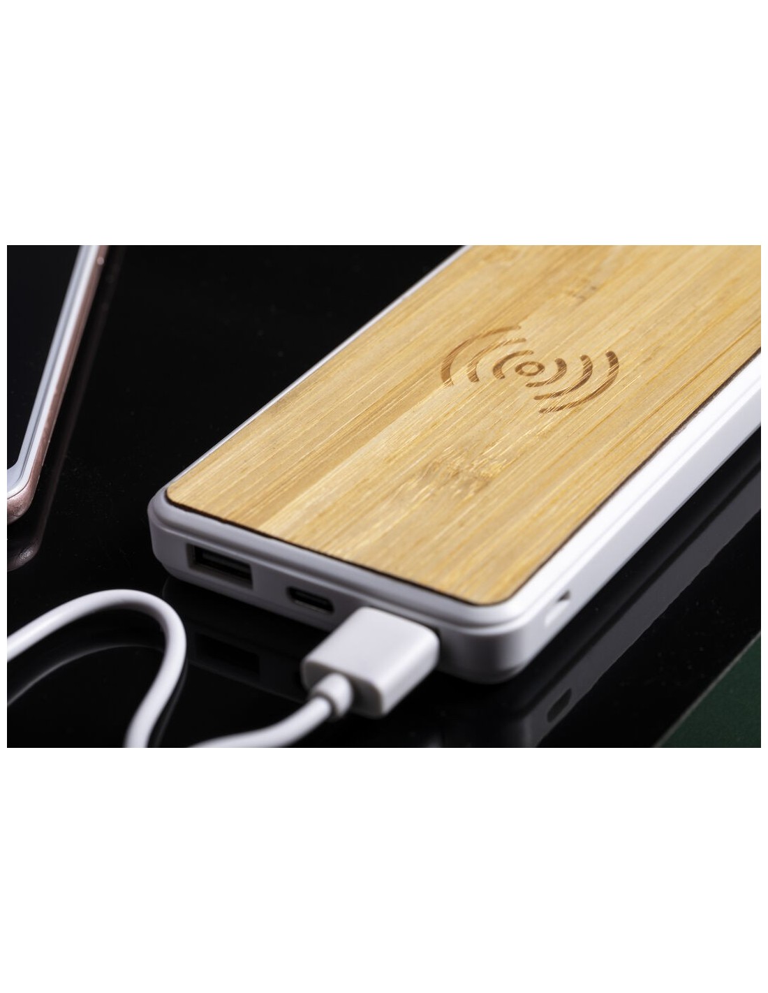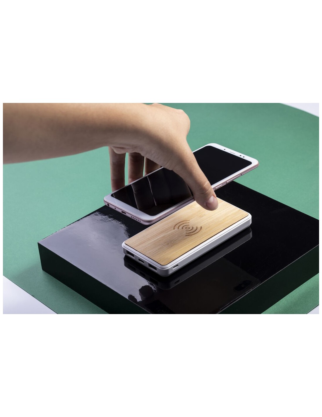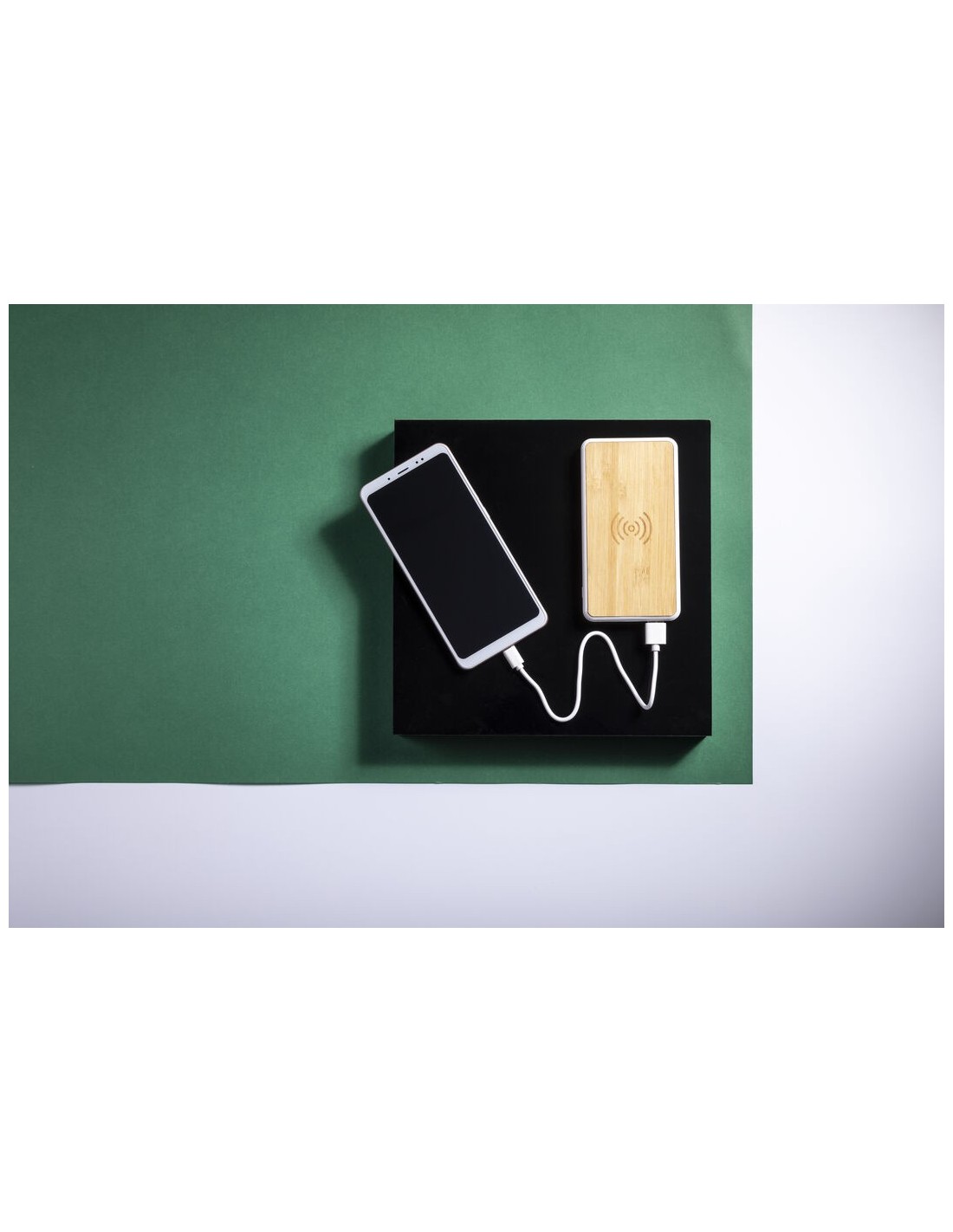Batería auxiliar externa de línea nature, con cargador inalámbrico integrado y carcasa en madera de bambú. 8.000 mAh de capacidad de carga e indicador de estado de carga. Salida doble USB y entradas Tipo C y micro USB -cable incluido-. Con amplia superficie de marcaje y presentada en atractiva caja de diseño. Las capacidades mostradas en todas nuestras baterías auxiliares externas son reales, incorporando todas ellas baterías de grado A y no recicladas, con una vida útil de al menos 500 ciclos de carga y según normativa CE. Además, están fabricadas conforme a los estándares RoHS y en cumplimiento con los siguientes requisitos de seguridad: Sistema de protección contra sobrecarga del power bank. Sistema de protección contra descarga completa que proporciona una mayor durabilidad del power bank. Sistema de bloqueo para evitar cortocircuitos. Sistema de transferencia de carga constante, acorde con la capacidad del dispositivo de destino.