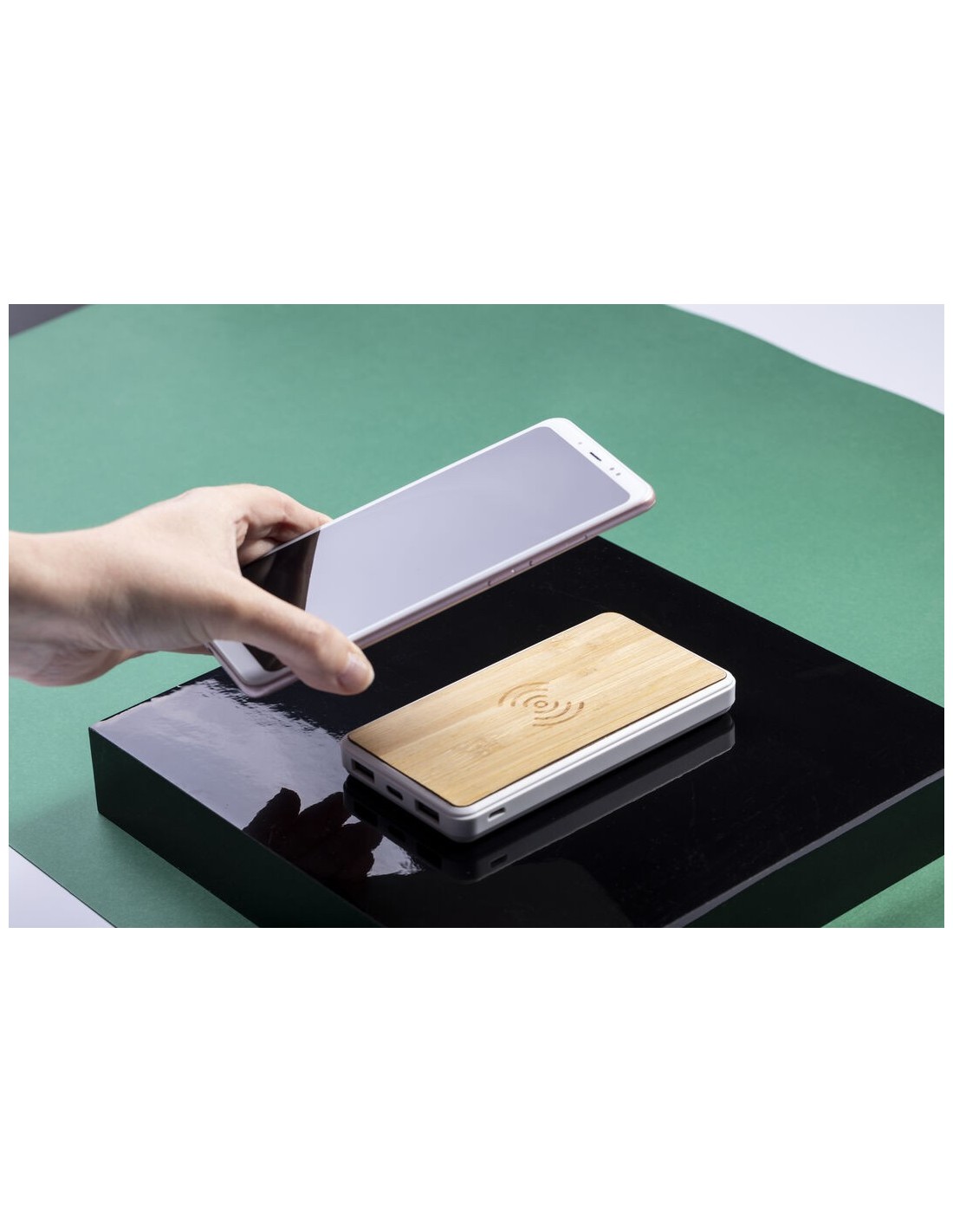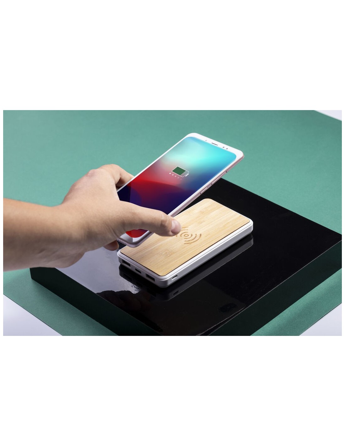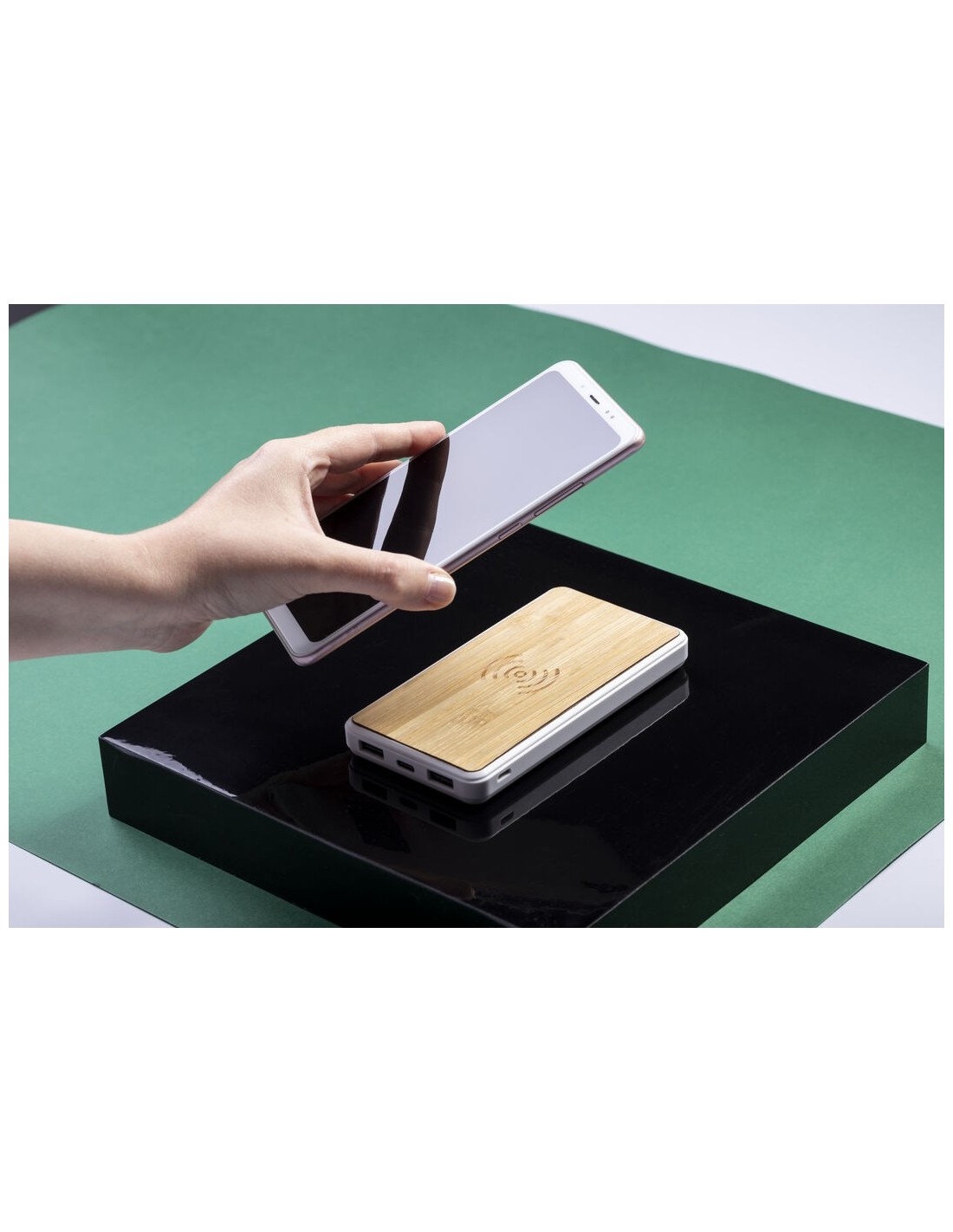 Batería auxiliar externa de línea nature, con cargador inalámbrico integrado y carcasa en madera de bambú. 8.000 mAh de capacidad de carga e indicador de estado de carga. Salida doble USB y entradas Tipo C y micro USB -cable incluido-. Con amplia superficie de marcaje y presentada en atractiva caja de diseño. Las capacidades mostradas en todas nuestras baterías auxiliares externas son reales, incorporando todas ellas baterías de grado A y no recicladas, con una vida útil de al menos 500 ciclos de carga y según normativa CE. Además, están fabricadas conforme a los estándares RoHS y en cumplimiento con los siguientes requisitos de seguridad: Sistema de protección contra sobrecarga del power bank. Sistema de protección contra descarga completa que proporciona una mayor durabilidad del power bank. Sistema de bloqueo para evitar cortocircuitos. Sistema de transferencia de carga constante, acorde con la capacidad del dispositivo de destino.