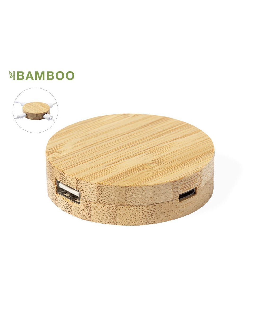 Puerto USB 2.0 fabricado en bambú. Incluye puerto Tipo C y 2 puertos USB, con entrada dual USB/Tipo C. Presentado en caja individual de diseño kraft. Fabricado conforme a estándares RoHS, con sistema de bloqueo para evitar cortocircuitos.