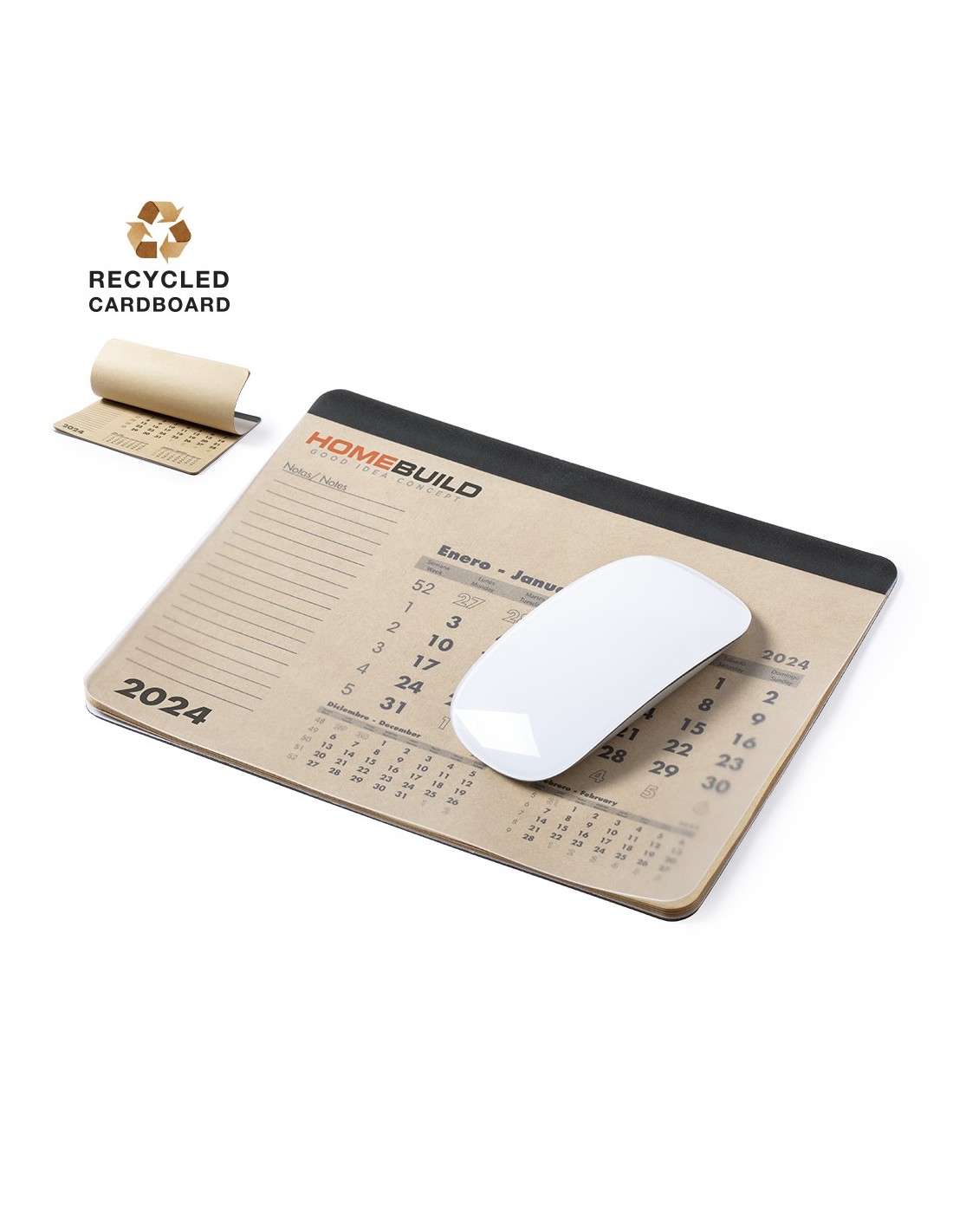 Alfombrilla calendario de línea nature, con hojas interiores en papel reciclado. Diseño mes en curso/mes anterior/mes siguiente, con espacio para notas. Cubierta de protección transparente y base acolchada antideslizante.