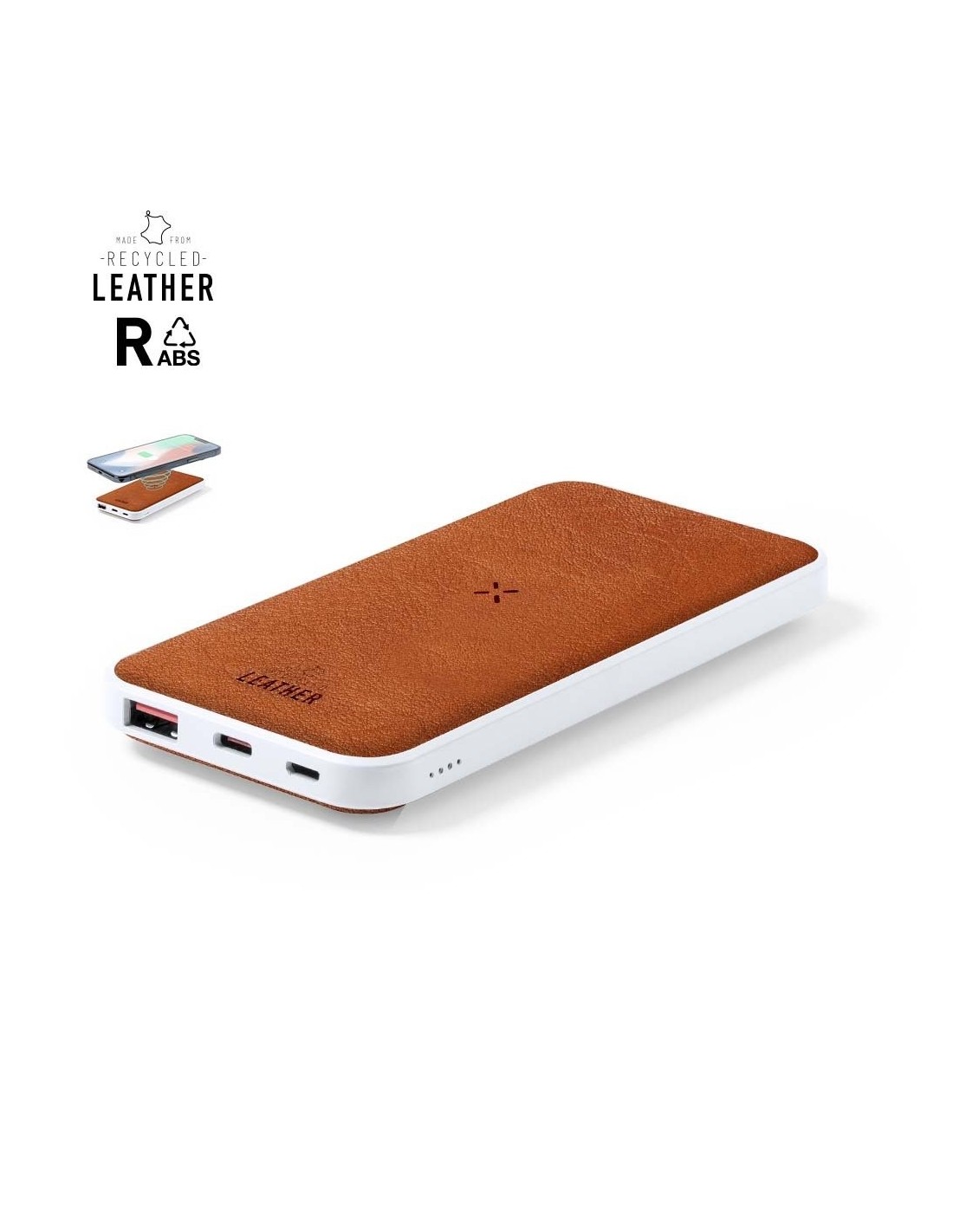 Batería auxiliar externa de 8.000 mAh con cargador inalámbrico integrado 10W, fabricada en combinación de RABS y cuero reciclado. Salida USB, con conexiones Tipo C de entrada y salida y Micro USB de entrada. Con indicadores LED de estado de carga y compatible con dispositivos equipados con tecnología de carga inalámbrica Qi. Incluye cable cargador Tipo C y manual de instrucciones en español e inglés. Presentado en caja individual de diseño kraft. Entrada/Salida USB C: 5-12V DC 3-1.5V, PD18W Entrada Micro USB: 5V DC 3A Salida USB: 5-12V DC 3-1.5A El material RABS o ABS Reciclado y el cuero reciclado proceden del reciclado de artículos al final de su vida útil. Los materiales reciclados empleados incorporan la certificación RCS que garantiza el origen reciclado de los mismos. Las capacidades mostradas en todas nuestras baterías auxiliares externas son reales, incorporando todas ellas baterías de grado A y no recicladas, con una vida útil de al menos 500 ciclos de carga y según normativa CE. Además, están fabricadas conforme a los estándares RoHS y en cumplimiento con los siguientes requisitos de seguridad: Sistema de protección contra sobrecarga del power bank. Sistema de protección contra descarga completa que proporciona una mayor durabilidad del power bank. Sistema de bloqueo para evitar cortocircuitos. Sistema de transferencia de carga constante, acorde con la capacidad del dispositivo de destino.