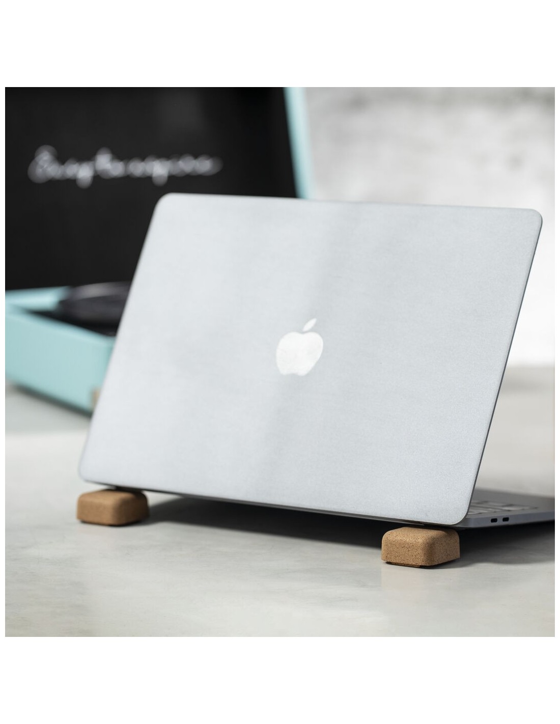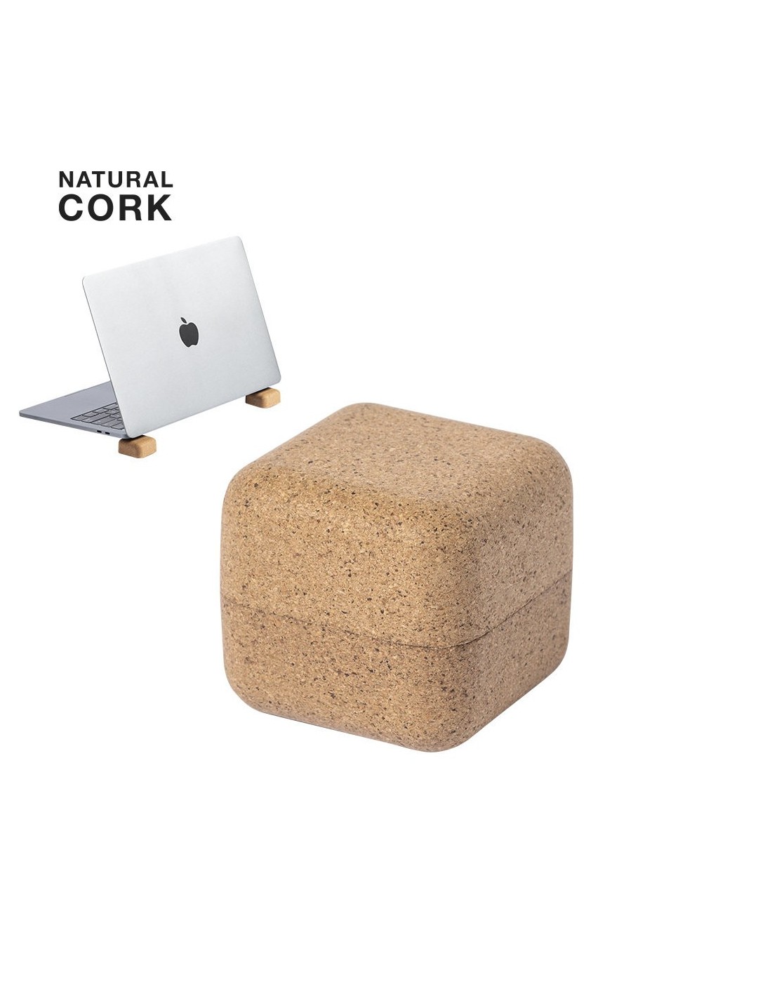 Compacto soporte de línea nature para ordenador portátil. Fabricado en corcho, para así fomentar la utilización de materias primas naturales y reducir las emisiones de contaminantes. Magnético y antideslizante, presentado en atractiva caja individual de diseño eco.