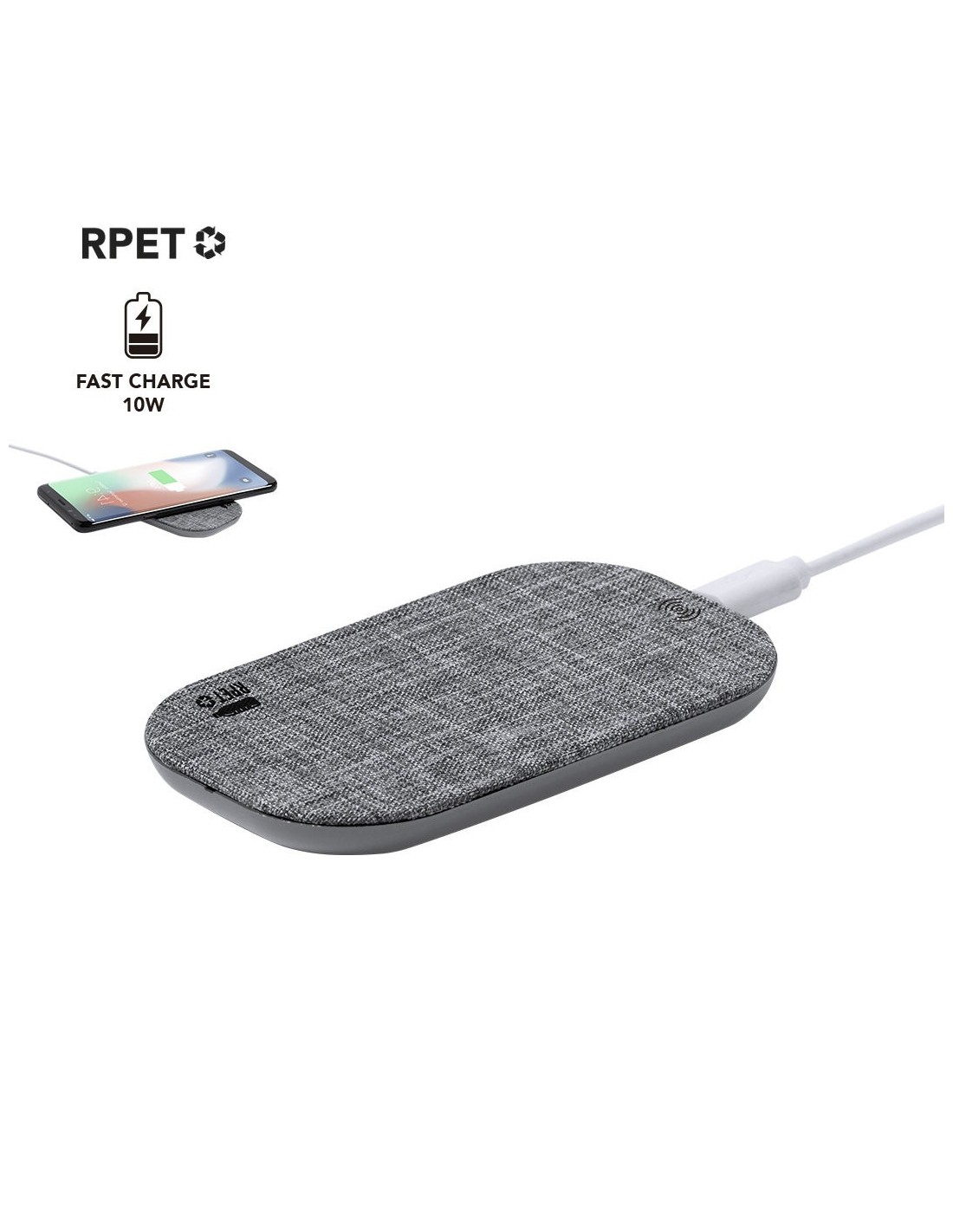 Cargador inalámbrico de línea nature, con práctico diseño ovalado y función carga inalámbrica de 10W. Fabricado en poliéster RPET, elaborado a partir de plástico reciclado, para así fomentar la reutilización de residuos plásticos y ayudar a la sostenibilidad del planeta. Cable de carga incluido, base antideslizante y compatible con dispositivos equipados con tecnología de carga inalámbrica. Presentado en atractiva caja de diseño eco. Distintivo RPET sobre el artículo.