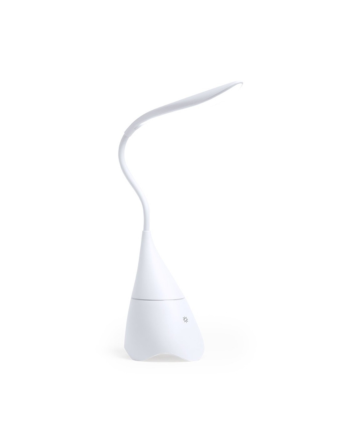 Original lámpara altavoz en acabado blanco mate, con altavoz integrado. Conexión Bluetooth® 4.2 de 5W de potencia. 18 LEDs, con intensidad de luz regulable y ajustable en altura. Con función manos libres y entrada de línea mediante conector jack de 3,5mm. Incluye cable cargador micro USB y cable de entrada de línea tipo jack de 3,5mm. Presentada en una atractiva caja de diseño.