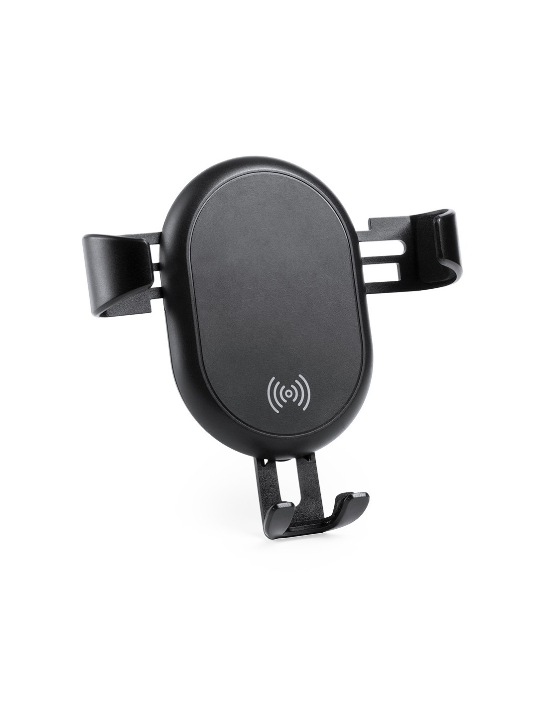 Soporte de rejilla de coche para smartphone con cargador inalámbrico integrado. En elegante color negro, con mecanismo de auto ajuste que usa el propio peso del teléfono móvil. Presentado en atractiva caja de diseño.