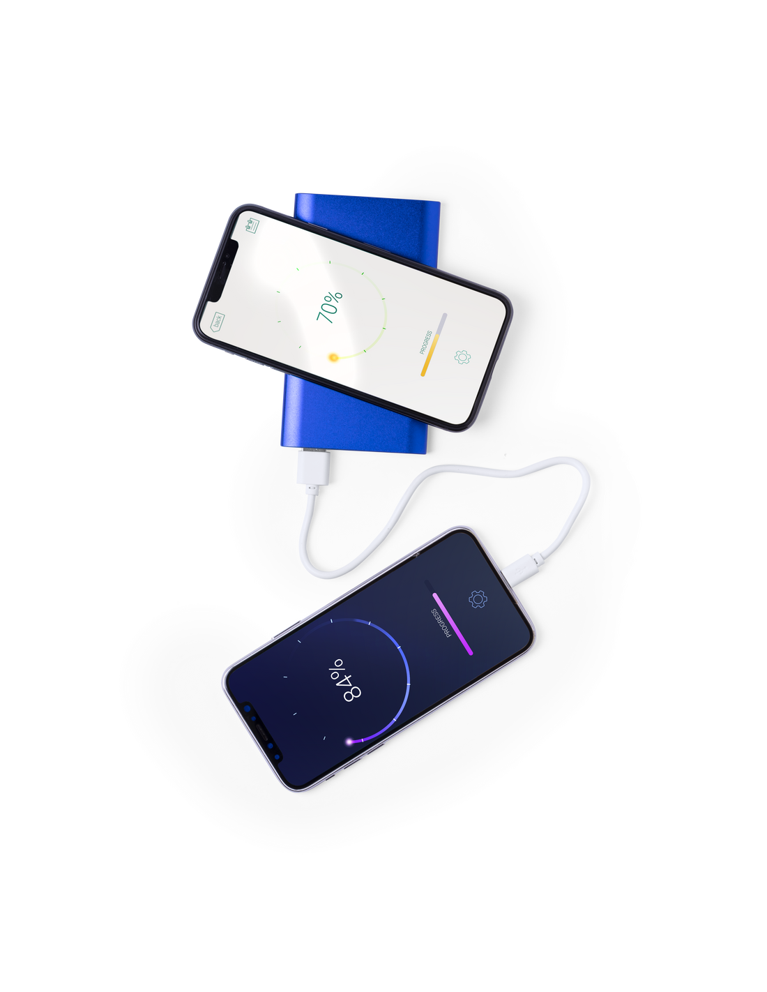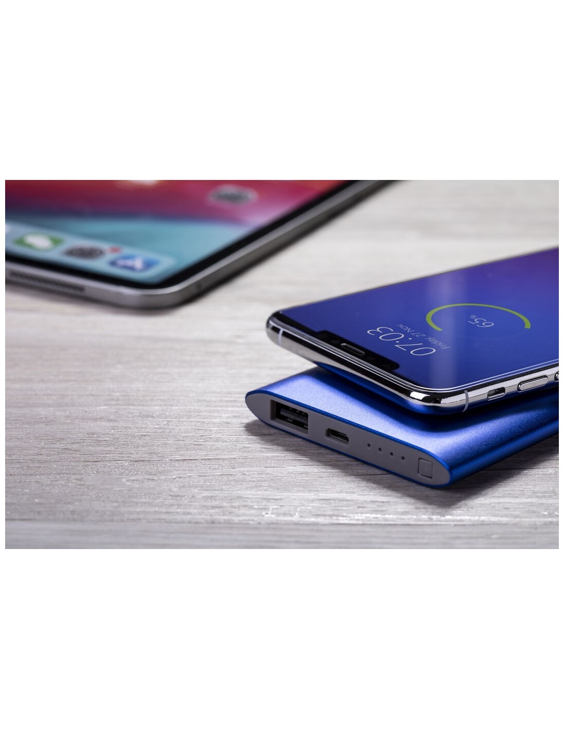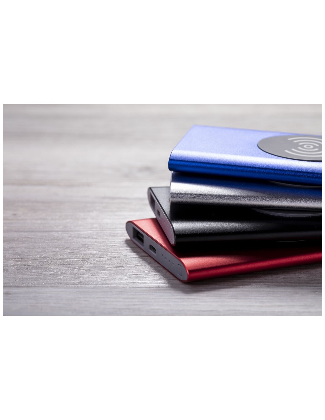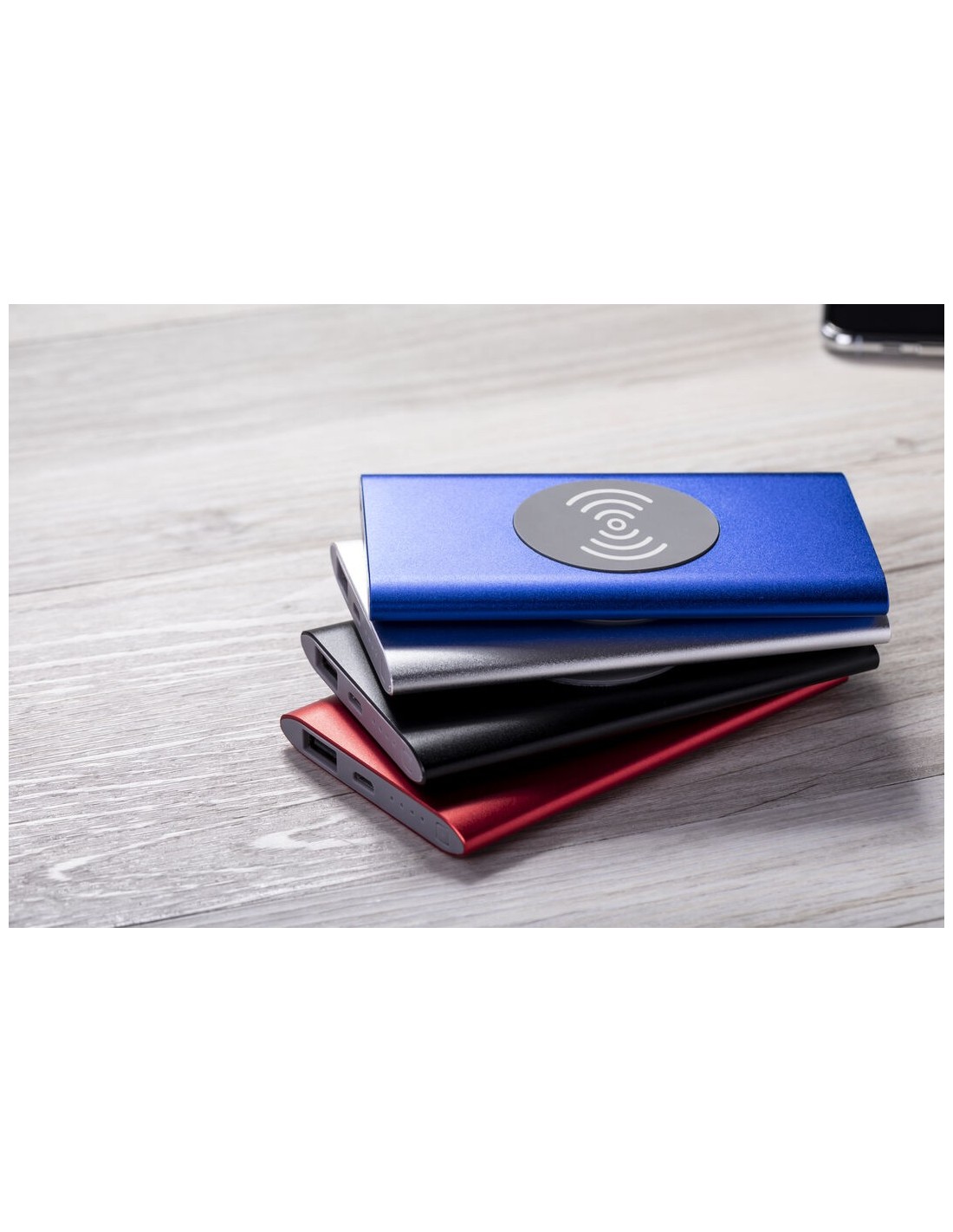 Batería auxiliar externa inalámbrica de 4.000 mAh. En resistente aluminio, con salida USB y cable de carga micro USB. Indicador de estado de carga y compatible con dispositivos equipados con tecnología de carga inalámbrica. Disponible en variada gama de colores. Las capacidades mostradas en todas nuestras baterías auxiliares externas son reales, incorporando todas ellas baterías de grado A y no recicladas, con una vida útil de al menos 500 ciclos de carga y según normativa CE. Además, están fabricadas conforme a los estándares RoHS y en cumplimiento con los siguientes requisitos de seguridad: Sistema de protección contra sobrecarga del power bank. Sistema de protección contra descarga completa que proporciona una mayor durabilidad del power bank. Sistema de bloqueo para evitar cortocircuitos. Sistema de transferencia de carga constante, acorde con la capacidad del dispositivo de destino.