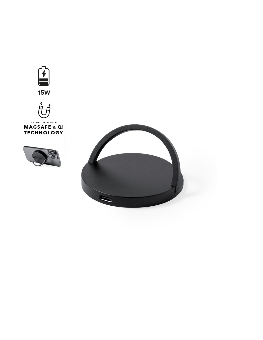 Cargador inalámbrico magnético 15W, fabricado en resistente aluminio. Con soporte regulable incluido e indicador de estado de carga. Compatible con terminales equipados con tecnología de carga inalámbrica e incluye cable de carga USB de 1m, con conector de aluminio. Amplia superficie de marcaje y presentado en atractiva caja de diseño. Disponible manual de instrucciones en español e inglés..Fabricado conforme a los estándares RoHS y en cumplimiento con los siguientes requisitos de seguridad: Sistema de protección contra sobrecalentamiento. Sistema de protección contra sobrecarga. Sistema de bloqueo para evitar cortocircuitos.