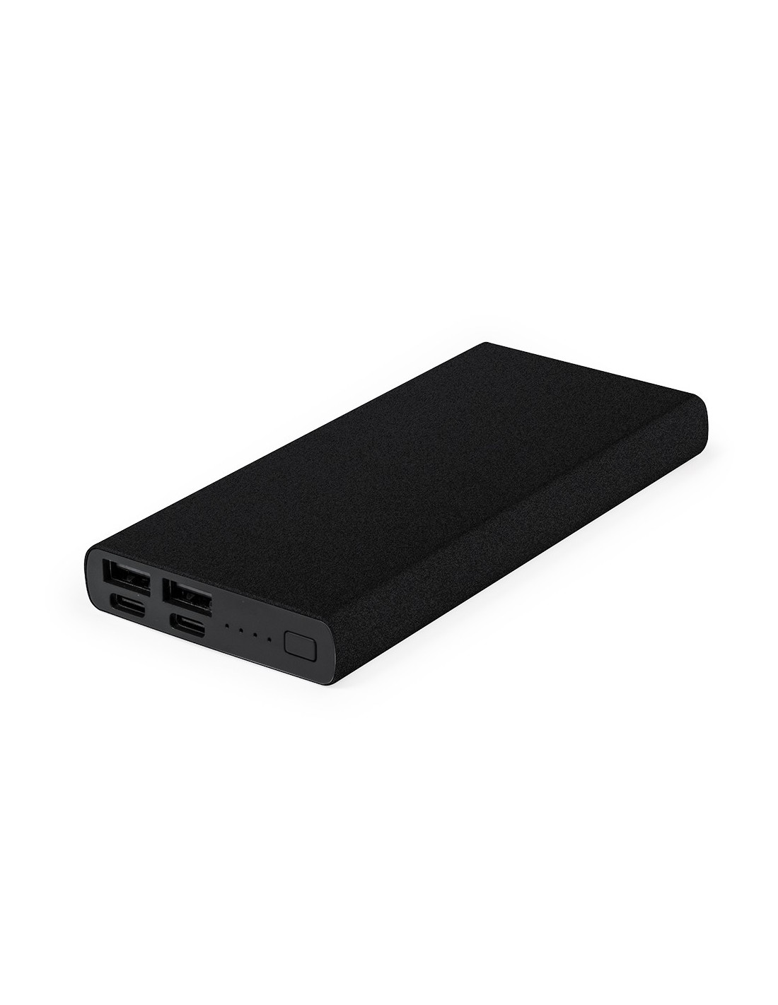 Batería auxiliar externa de gran capacidad de carga -10.000 mAh- con cuerpo acabado en resistente aluminio. Con salidas USB y Tipo C dual para cargar tres dispositivos simultáneamente y 1 conexión para entrada Tipo C. LEDs indicadores de estado de carga, diseño recto extraplano y amplia superficie de marcaje, especialmente recomendada para láser. Presentada en atractiva caja de diseño kraft. Disponible manual de instrucciones en español e inglés..Las capacidades mostradas en todas nuestras baterías auxiliares externas son reales, incorporando todas ellas baterías de grado A y no recicladas, con una vida útil de al menos 500 ciclos de carga y según normativa CE. .Además, están fabricadas conforme a los estándares RoHS y en cumplimiento con los siguientes requisitos de seguridad:.Sistema de protección contra sobrecarga del power bank. .Sistema de protección contra descarga completa que proporciona una mayor durabilidad del power bank. .Sistema de bloqueo para evitar cortocircuitos. .Sistema de transferencia de carga constante, acorde con la capacidad del dispositivo de destino..4000 mAh. Salida USB. Entrada Micro USB.