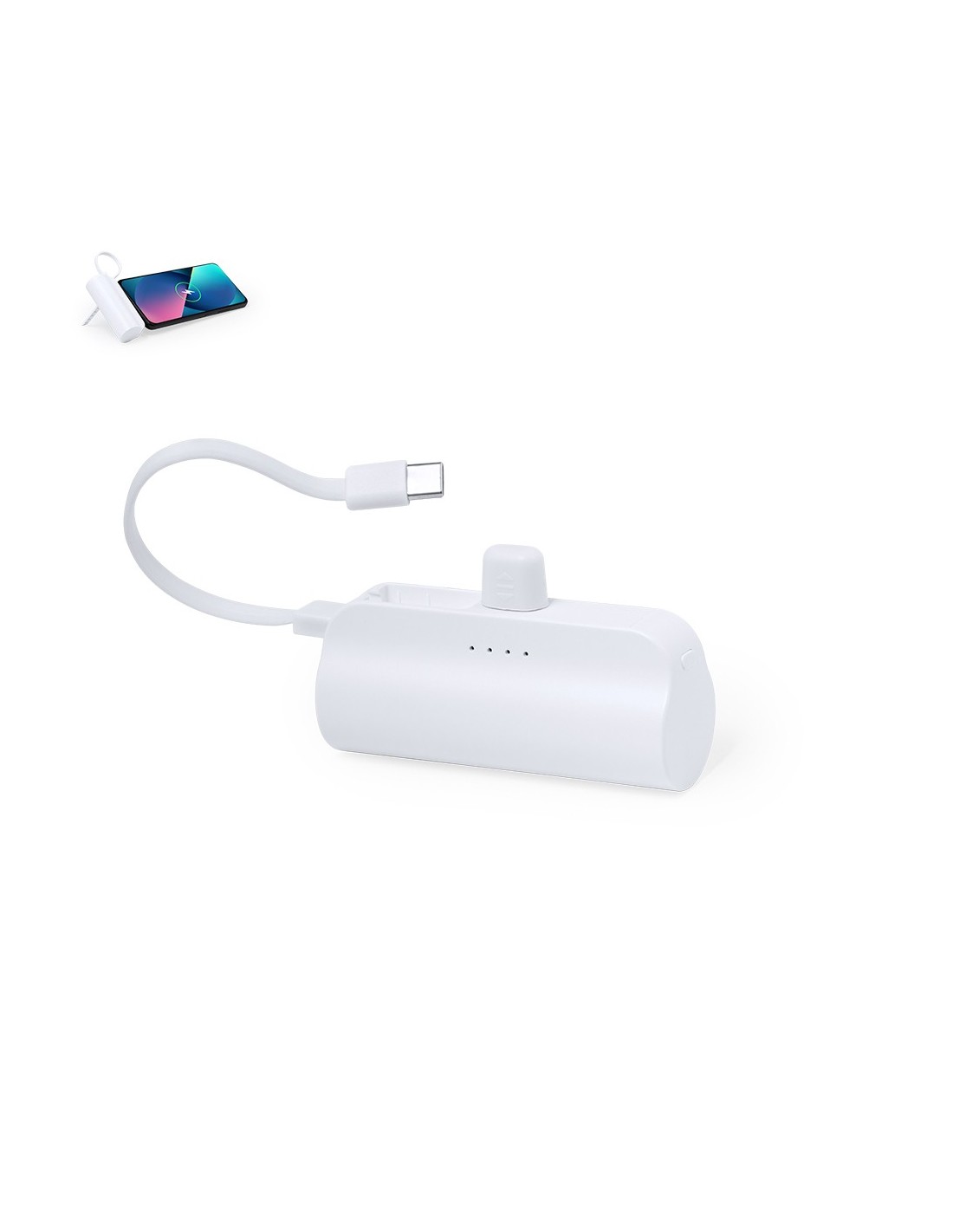 Batería auxiliar externa de 5.000 mAh de capacidad fabricada en resistente ABS. Con original diseño cilíndrico y patilla extraíble que lo convierte en soporte, para todo tipo de dispositivos móviles. Incluye dos salidas y una entrada Tipo C e indicador de estado de carga, con cable Tipo C incluido. Presentada en atractiva caja de diseño kraft, con manual de instrucciones en español e inglés..Las capacidades mostradas en todas nuestras baterías auxiliares externas son reales, incorporando todas ellas baterías de grado A y no recicladas, con una vida útil de al menos 500 ciclos de carga y según normativa CE..Además, están fabricadas conforme a los estándares RoHS y en cumplimiento con los siguientes requisitos de seguridad:.Sistema de protección contra sobrecarga del power bank..Sistema de protección contra descarga completa que proporciona una mayor durabilidad del power bank..Sistema de bloqueo para evitar cortocircuitos..Sistema de transferencia de carga constante, acorde con la capacidad del dispositivo de destino..