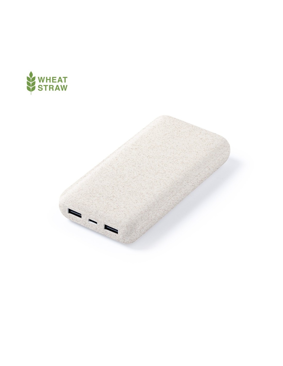 Batería auxiliar externa de 20.000 mAh fabricada en caña de trigo. 2 salidas USB, con conexión Tipo C dual de entrada y salida e indicador LED de estado de carga. Presentado en caja individual de diseño kraft, con manual de instrucciones en español e inglés..Entrada/Salida USB C: 5-12V DC 3-1.5V, PD18W.Salidas USB: 5-12V DC 4.5-1.5A, 22.5W.La caña de trigo fomenta la utilización de materias primas naturales, reduciendo así las emisiones contaminantes..Las capacidades mostradas en todas nuestras baterías auxiliares externas son reales, incorporando todas ellas baterías de grado A y no recicladas, con una vida útil de al menos 500 ciclos de carga y según normativa CE..Además, están fabricadas conforme a los estándares RoHS y en cumplimiento con los siguientes requisitos de seguridad:.Sistema de protección contra sobrecarga del power bank..Sistema de protección contra descarga completa que proporciona una mayor durabilidad del power bank..Sistema de bloqueo para evitar cortocircuitos..Sistema de transferencia de carga constante, acorde con la capacidad del dispositivo de destino.