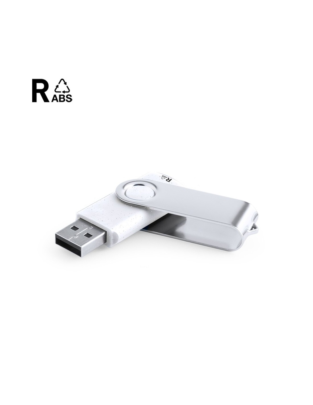 Memoria USB de 16GB de capacidad, con cuerpo en resistente RABS y clip metálico giratorio. Presentada caja de diseño kraft..El RABS es un plástico altamente reciclable de gran resistencia y con multitud de aplicaciones que lo convierten en una solución eco-friendly. Con certificación RCS, que garantiza el origen reciclado del mismo.