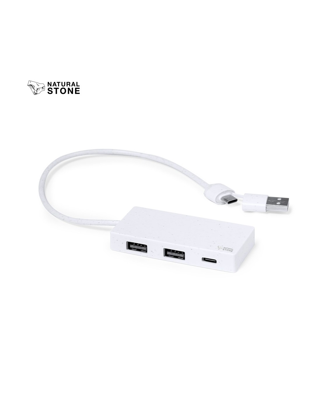 Puerto USB 2.0 fabricado a partir de extractos de piedra natural en combinación con resistente ABS. Incluye puerto Tipo C y 2 puertos USB, con entrada dual USB/Tipo C. Presentado en caja individual de diseño kraft..Fabricado con extractos de piedra natural, ayudando a la reducción del uso de plásticos, además de proporcionar un acabado suave y resistente.