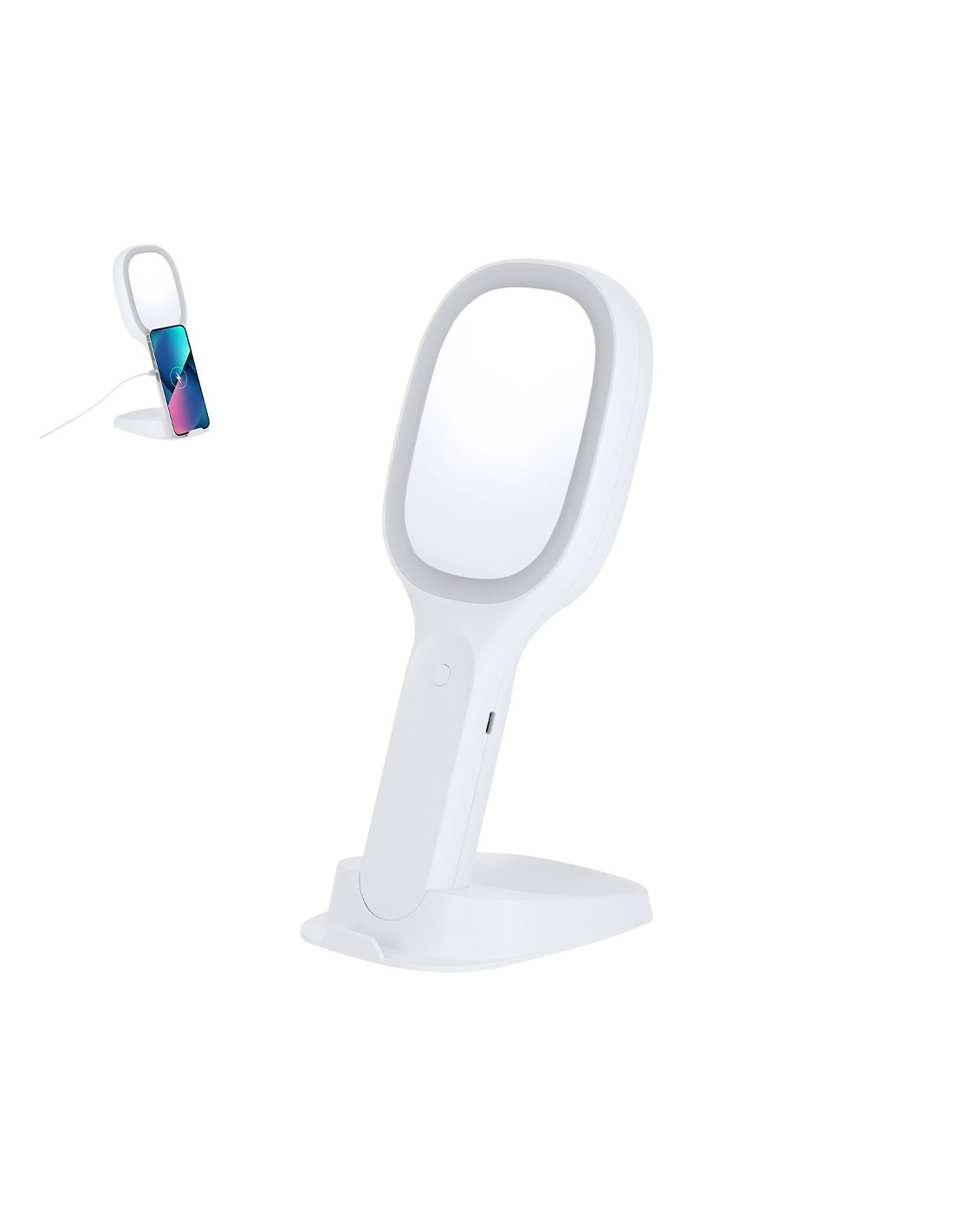 Espejo multifunción extraíble con versátiles funciones:- Espejo de aumento 1x por una cara y 5x por la otra.- Cargador inalámbrico de 15W.- Soporte para smartphone, permitiendo el uso del dispositivo mientras utilizas el espejo.- Luz con 3 intensidades: blanca, intermedia y cálida. Con 44 luces LEDs.- Compartimento para objetos pequeños.Fabricado conforme a los estándares RoHS y en cumplimiento con los siguientes requisitos de seguridad:Sistema de protección contra sobrecalentamiento. Sistema de protección contra sobrecarga. Sistema de bloqueo para evitar cortocircuitos.