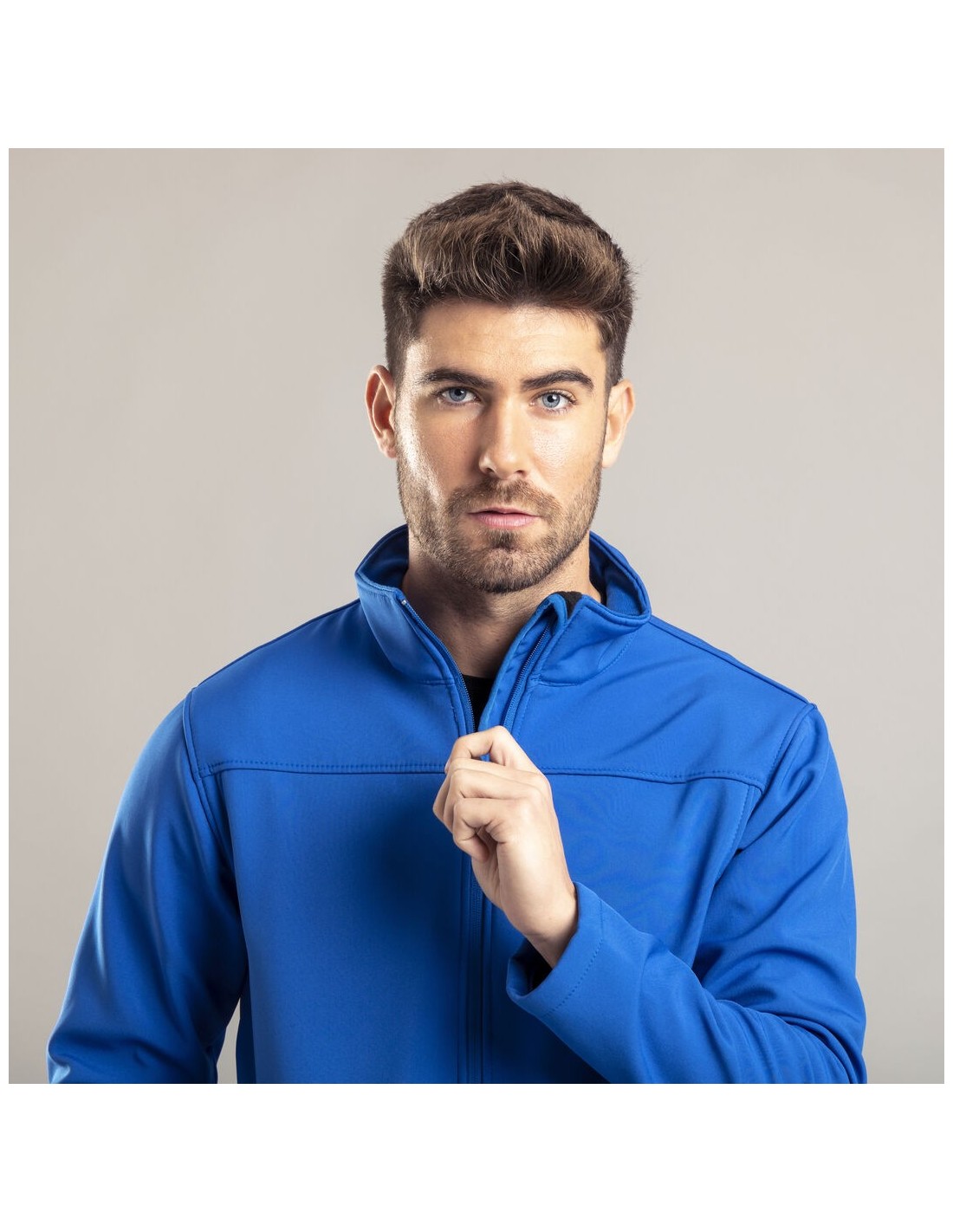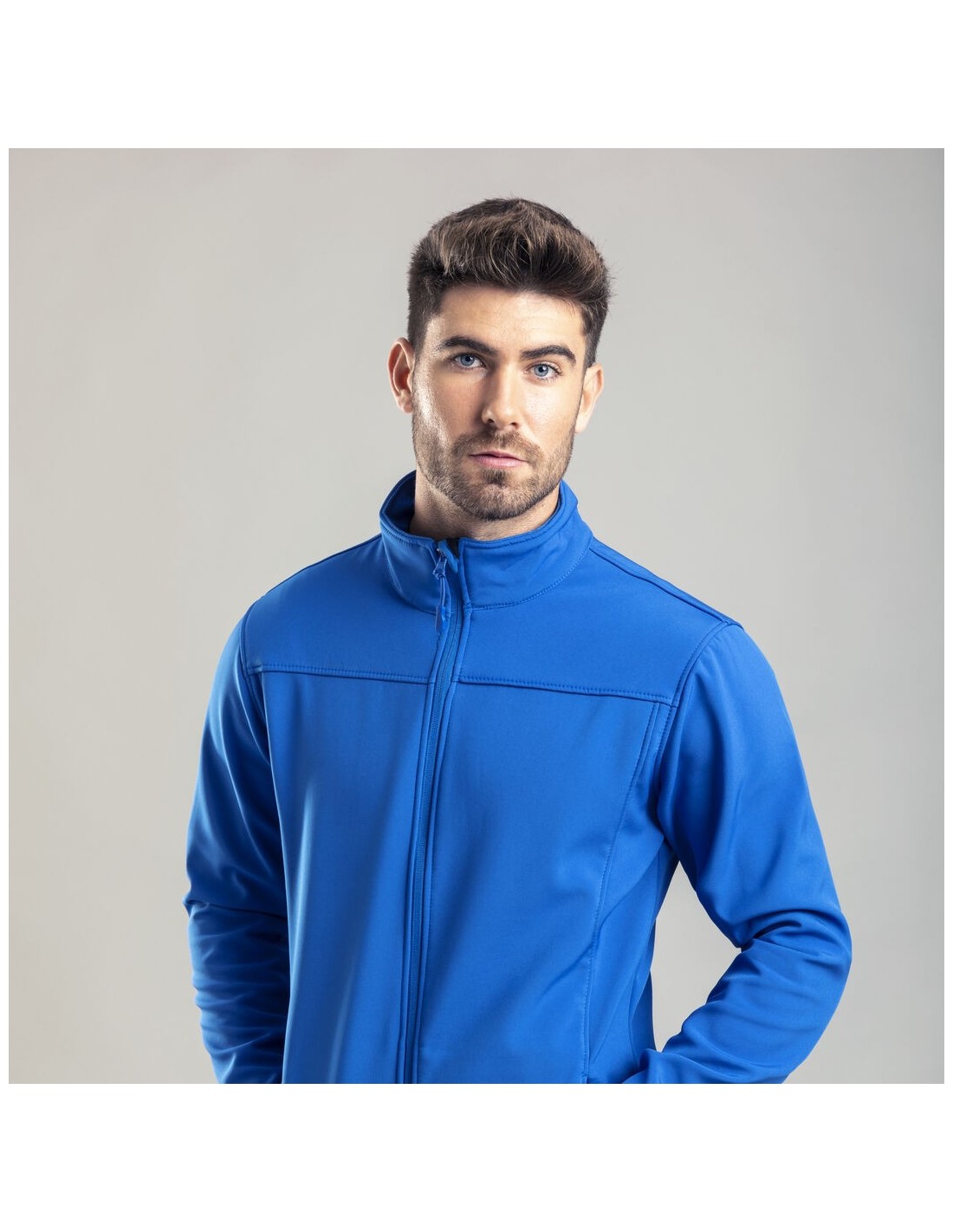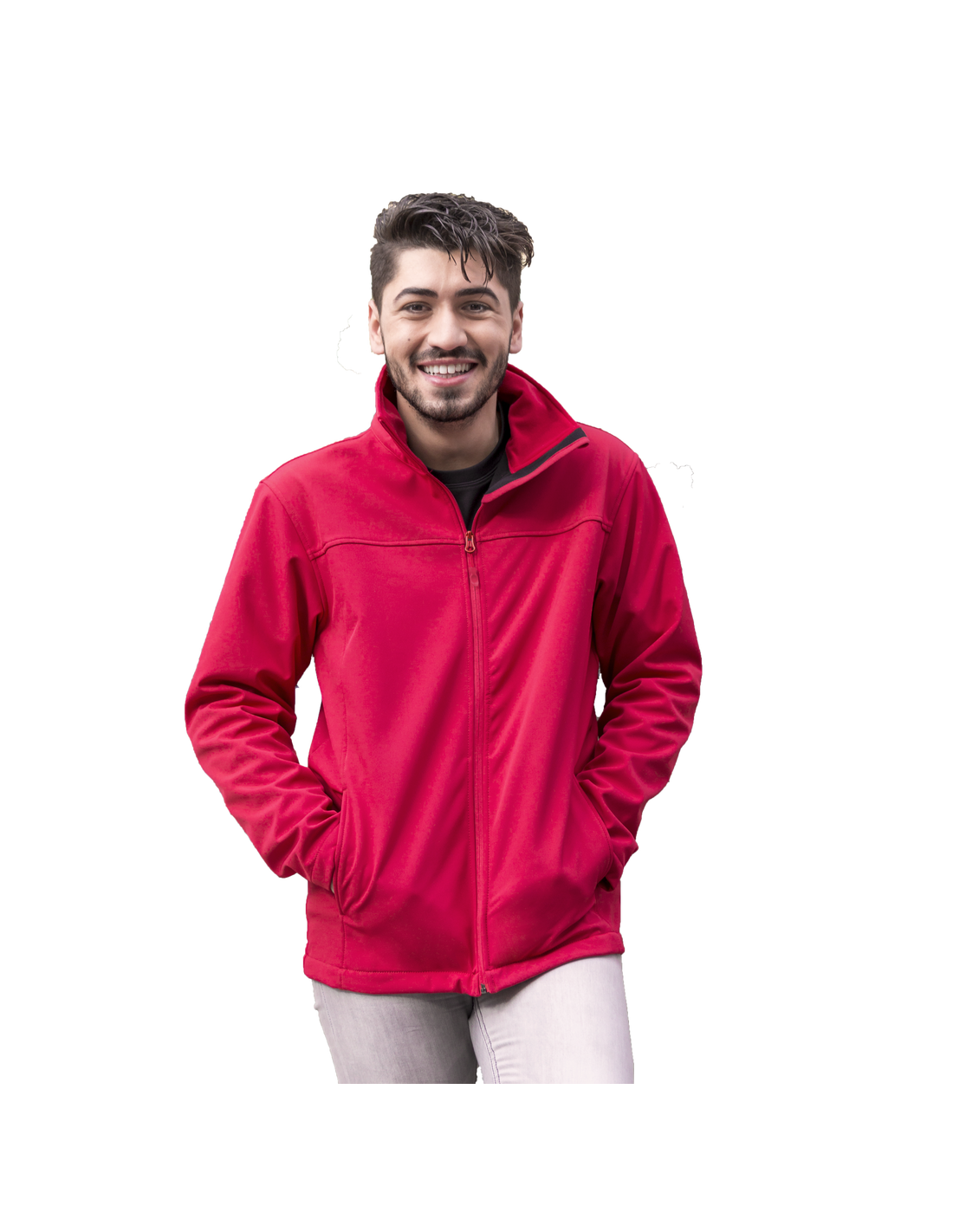 Chaqueta impermeable y transpirable en combinación de materiales soft shell y elastano de 300g/m2. En variada gama de vivos colores, con cierre de cremallera y bolsillos laterales. Disponible en tallas S, M, L, XL, XXL.