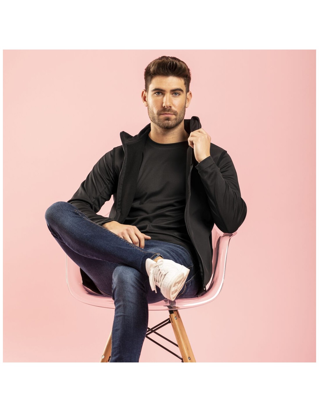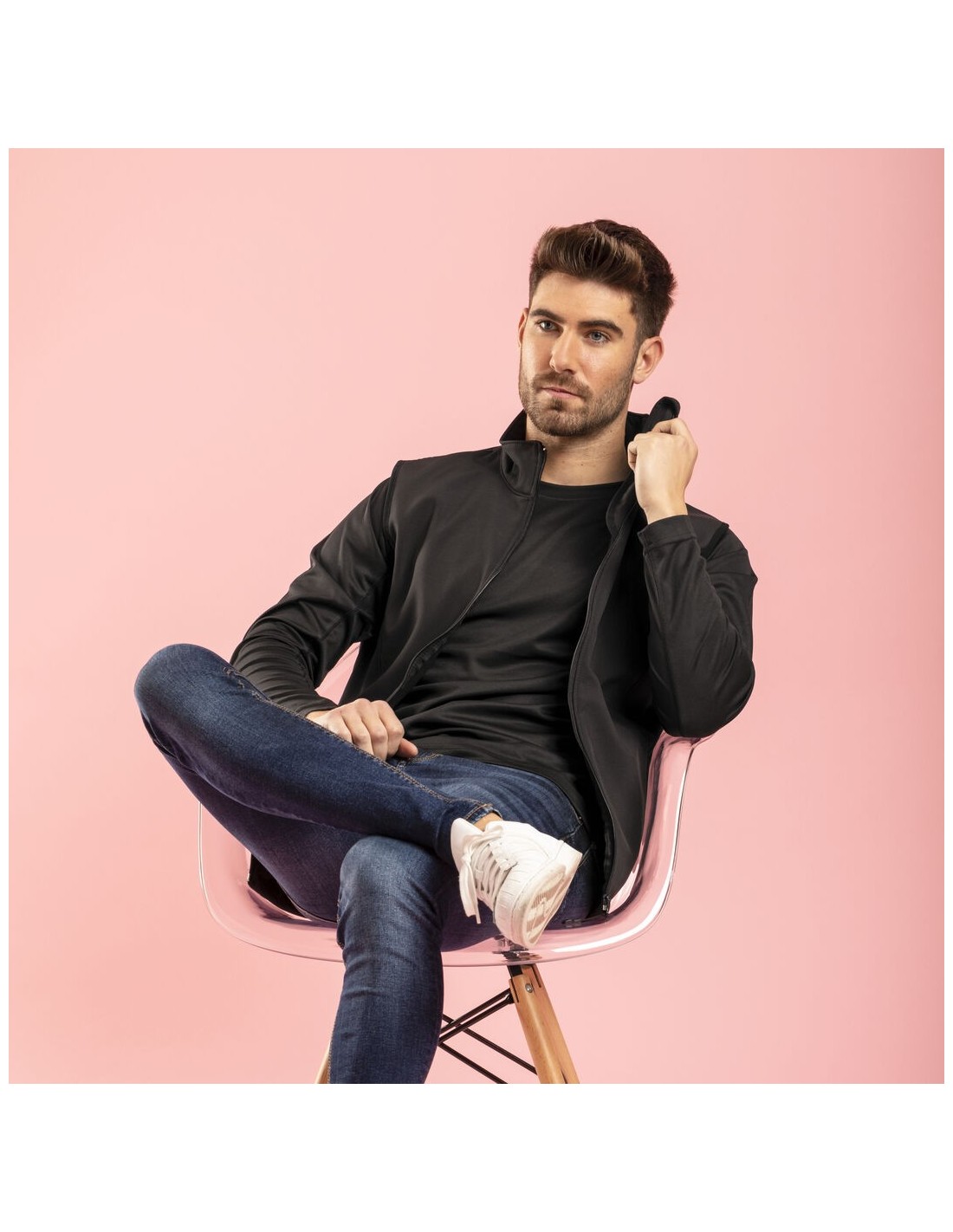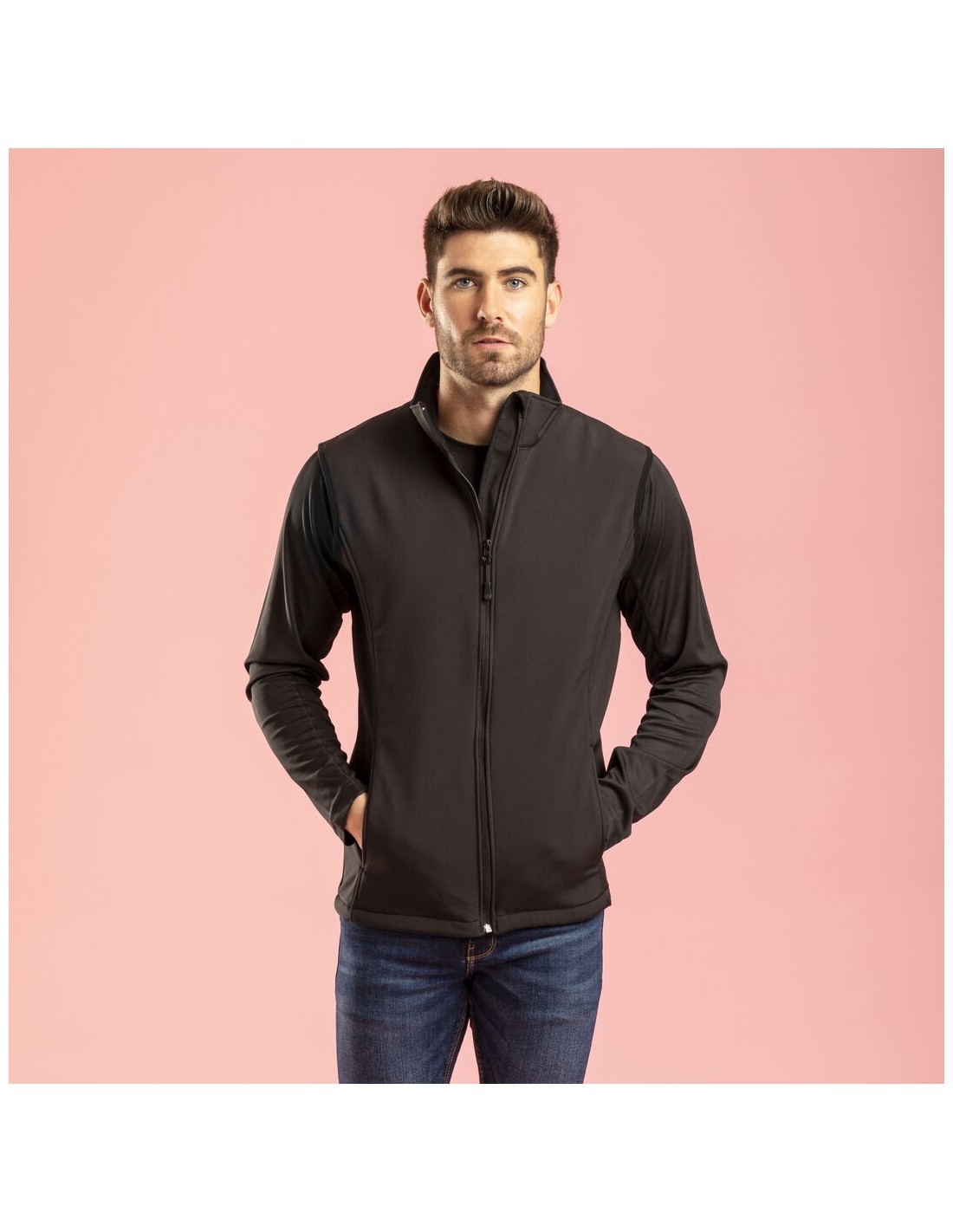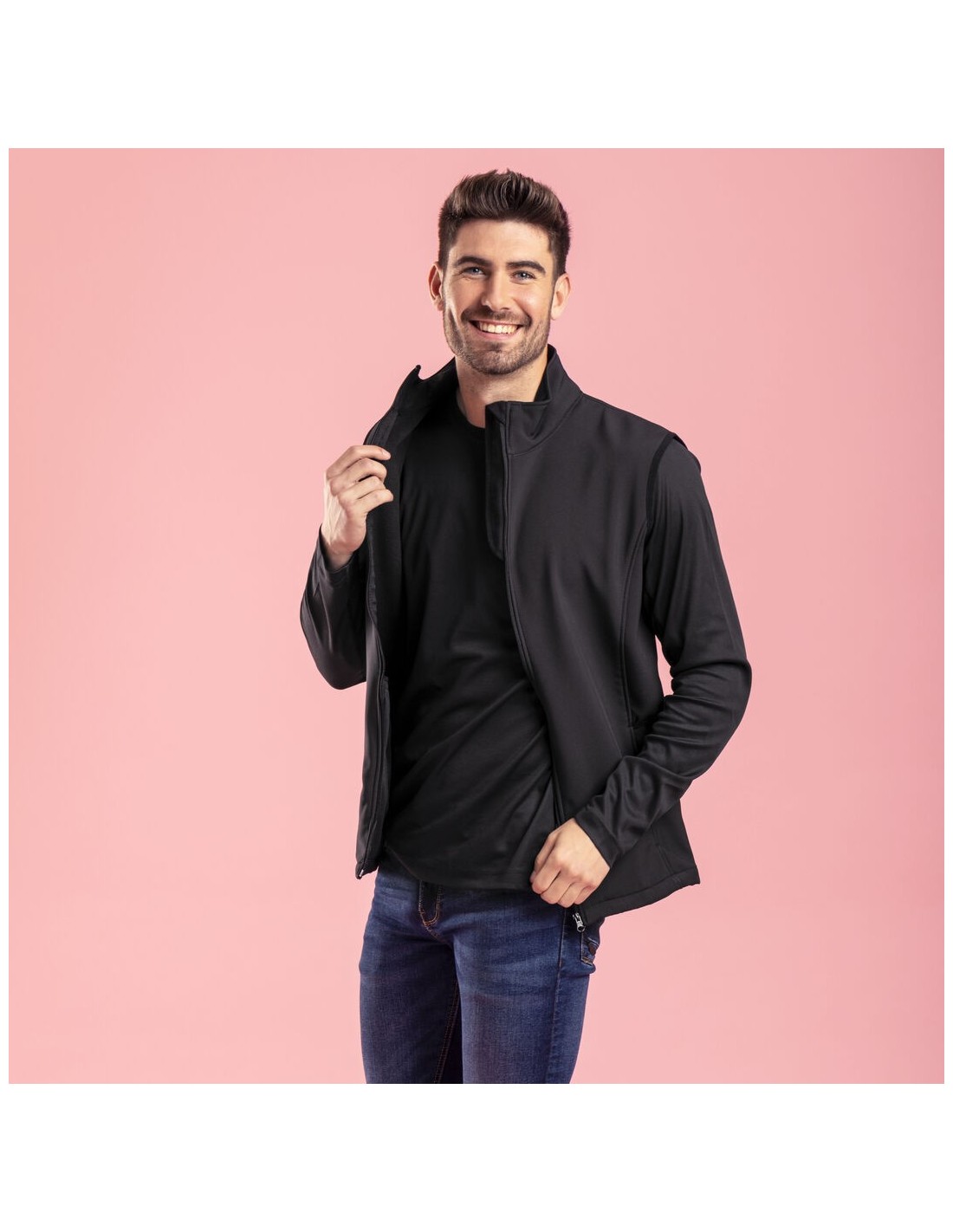 Chaqueta impermeable y transpirable en combinación de materiales soft shell y elastano de 300g/m2. En variada gama de vivos colores, con cierre de cremallera y bolsillos laterales. Disponible en tallas S, M, L, XL, XXL.