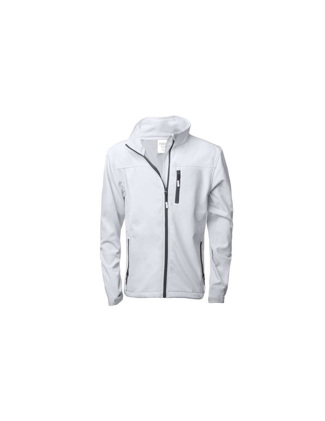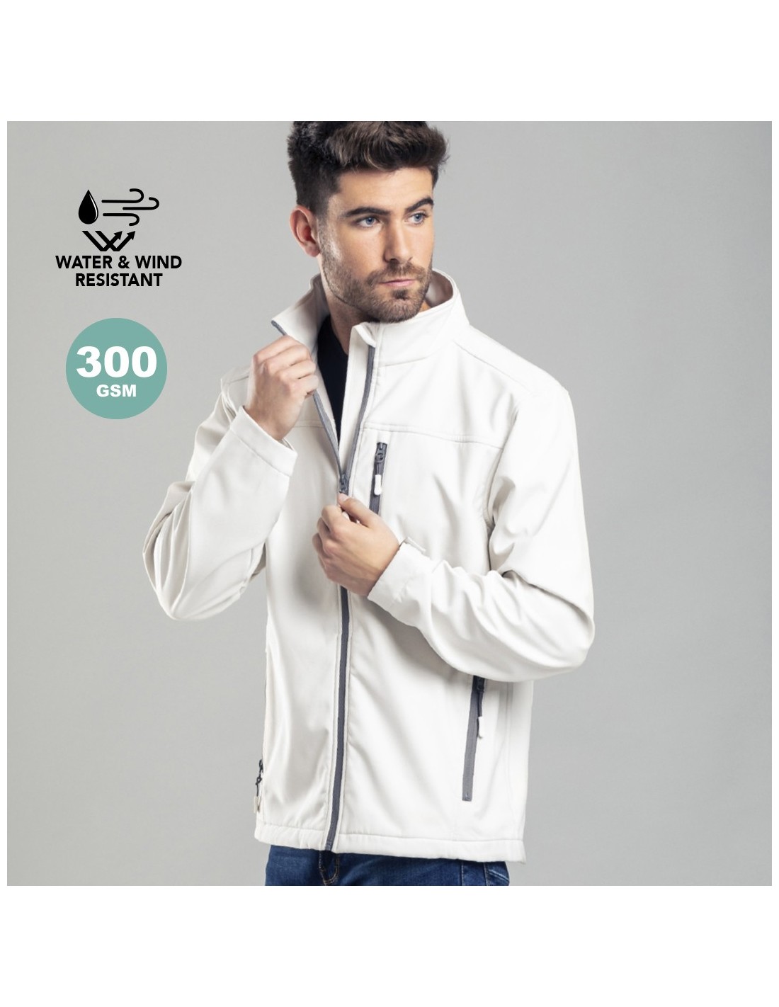 Chaqueta impermeable y transpirable en de soft shell de 300g/m2. De elegante diseño bicolor, en color blanco con contraste de detalles en gris. Cierre de cremallera y bolsillos frontal y laterales de cremallera. Puños ajustables y disponible en tallas S, M, L, XL, XXL.