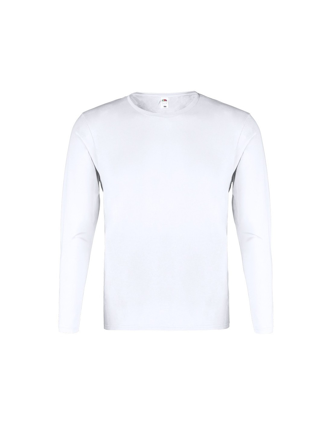 Camiseta adulto blanca Iconic Long Sleeve de Fruit Of The Loom. Manga larga, fabricada en material 100% algodón peinado Ring Spun de 140g/m2. De tacto suave y corte clásico, con cuello redondo estrecho de canalé 1x1 y tapeta a juego. Etiqueta fácilmente removible y disponible en tallas S, M, L, XL, XXL.