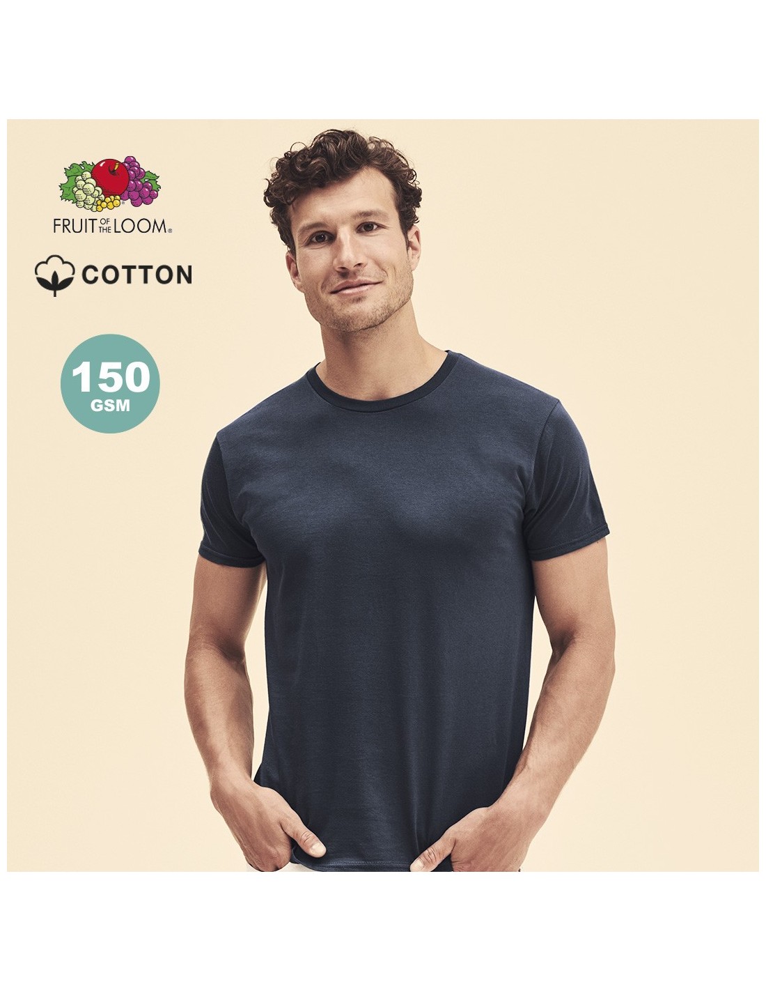 Camiseta para adulto color Iconic de Fruit Of The Loom. Fabricada en material 100% algodón peinado Ring Spun de 150g/m2 hilado en anillo. De tacto suave y corte moderno, con cuello redondo estrecho de canalé1x1 y tapeta a juego. Etiqueta fácilmente removible y disponible en variada gama de colores. Tallas S, M, L, XL, XXL.