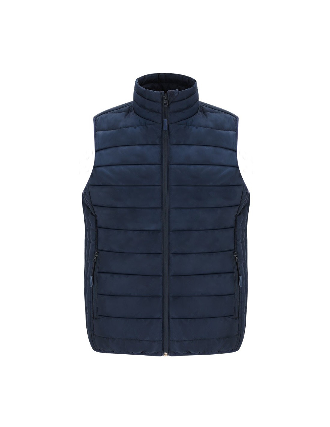 Chaleco acolchado de mujer en material extra ligero, compacto y de corte entallado. Resistente al agua y cortavientos, con suave relleno y forro interior. Cierre de cremallera invertida y tirador a juego. Cuenta con 2 bolsillos laterales con cremalleras y tirador a juego y 2 bolsillos interiores. Sisa y cintura con ribete elástico a tono. Incluye práctica funda de transporte.