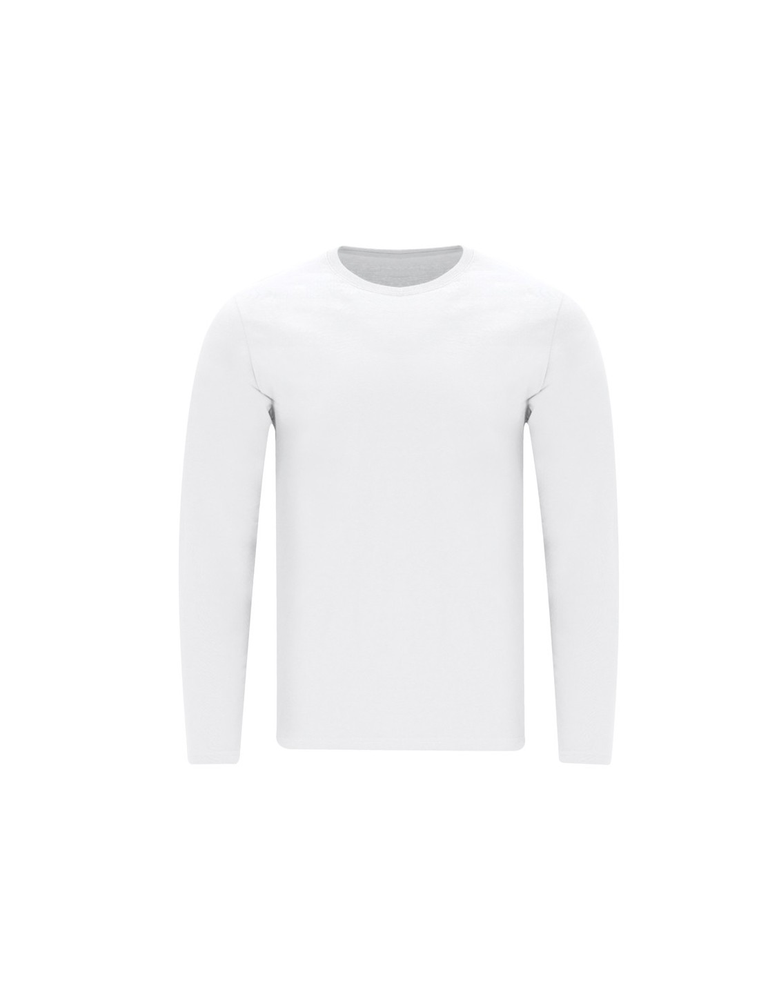 Camiseta de manga larga para adulto en color blanco de suave y agradable tacto en 100% algodón, punto liso de 160 g/m2. Confeccionada en tejido tubular, con cuello redondo acanalado 1x1 y con cubrecosturas reforzado a juego en color blanco.