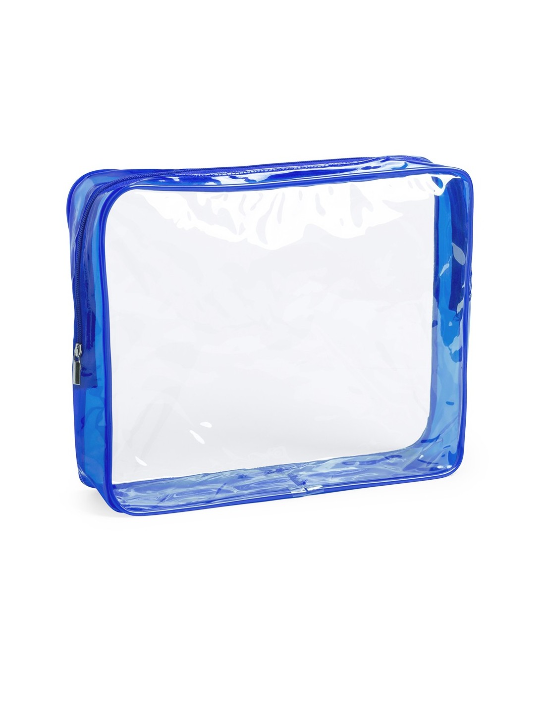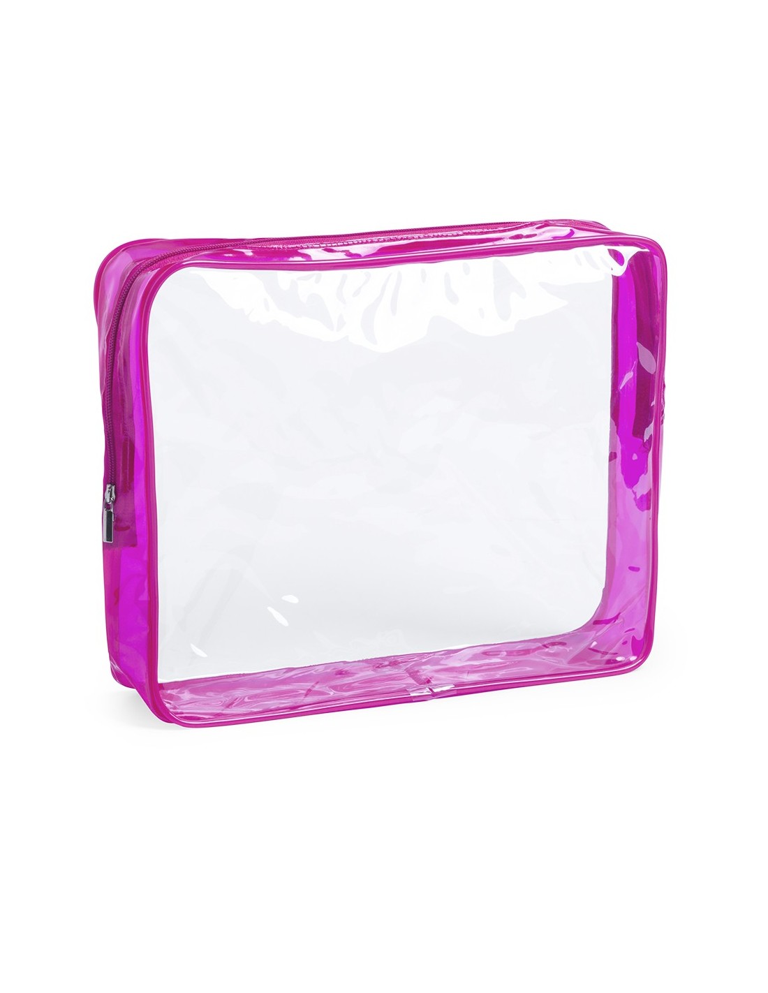 Neceser multiusos en resistente material PVC. Diseño en combinación de materiales translúcidos y transparentes. Disponible en vivos colores, con cierre de cremallera a juego.
