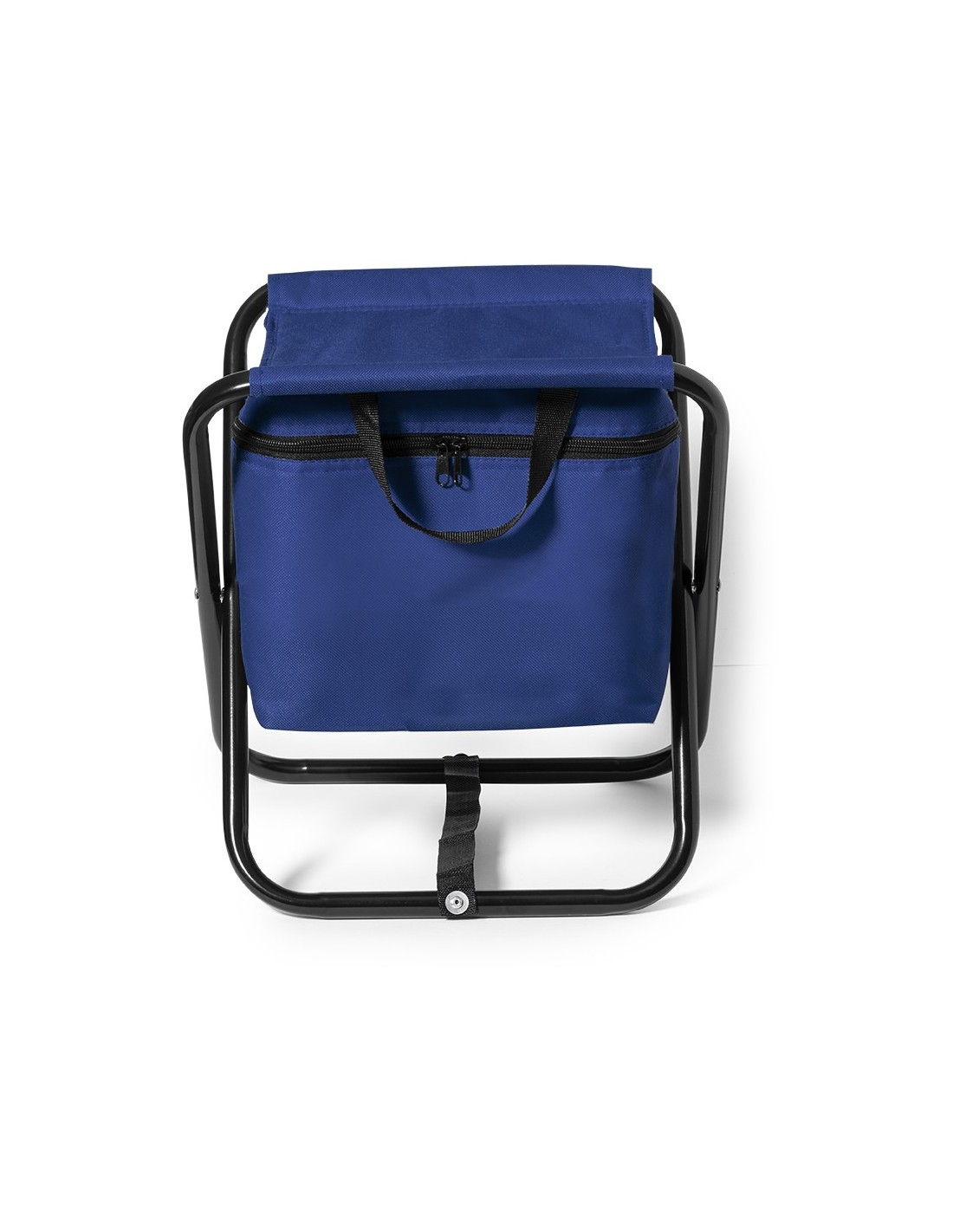 Silla plegable con cuerpo de aluminio y nevera integrada en asiento de variados colores. Asiento y nevera en resistente poliéster 600D con costuras reforzadas. Con cierre de cremallera y prácticas asas de transporte en nylon. Con tira de refuerzo de nylon