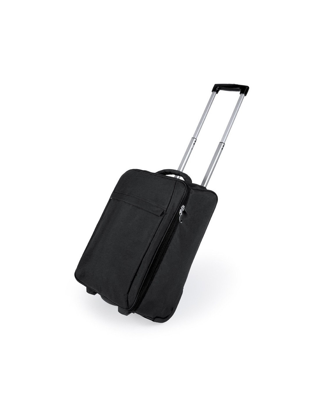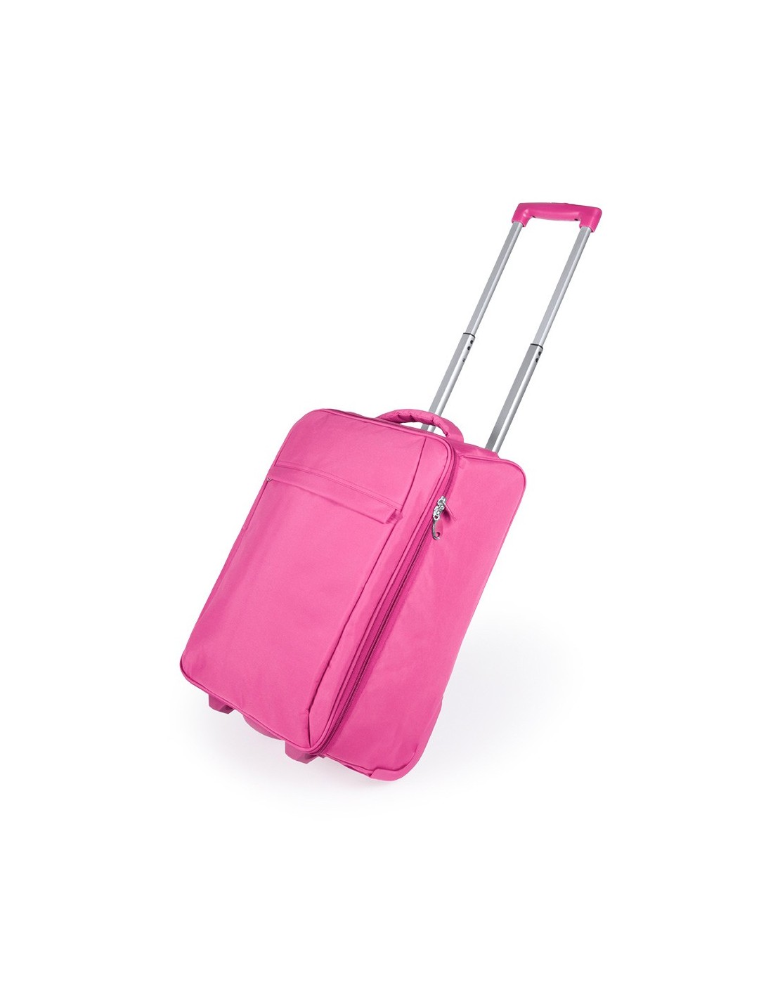 Trolley plegable de alta calidad y 2 ruedas en resistente poliéster 300D de vivos colores. Compartimento principal con cierre de cremallera de doble tirador en diseño bicolor y bolsillo frontal con cierre de cremallera. Con asa de mano acolchada y base re