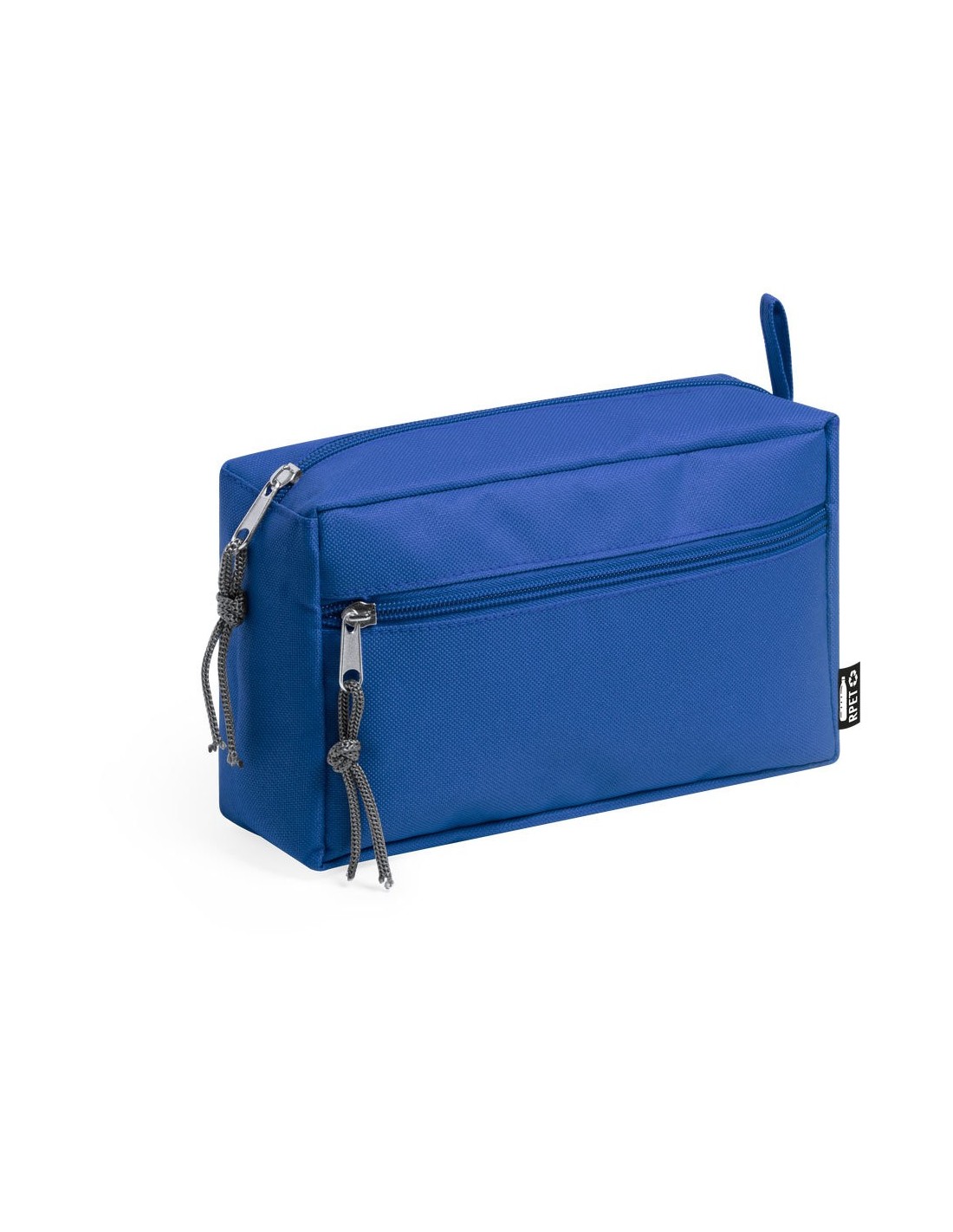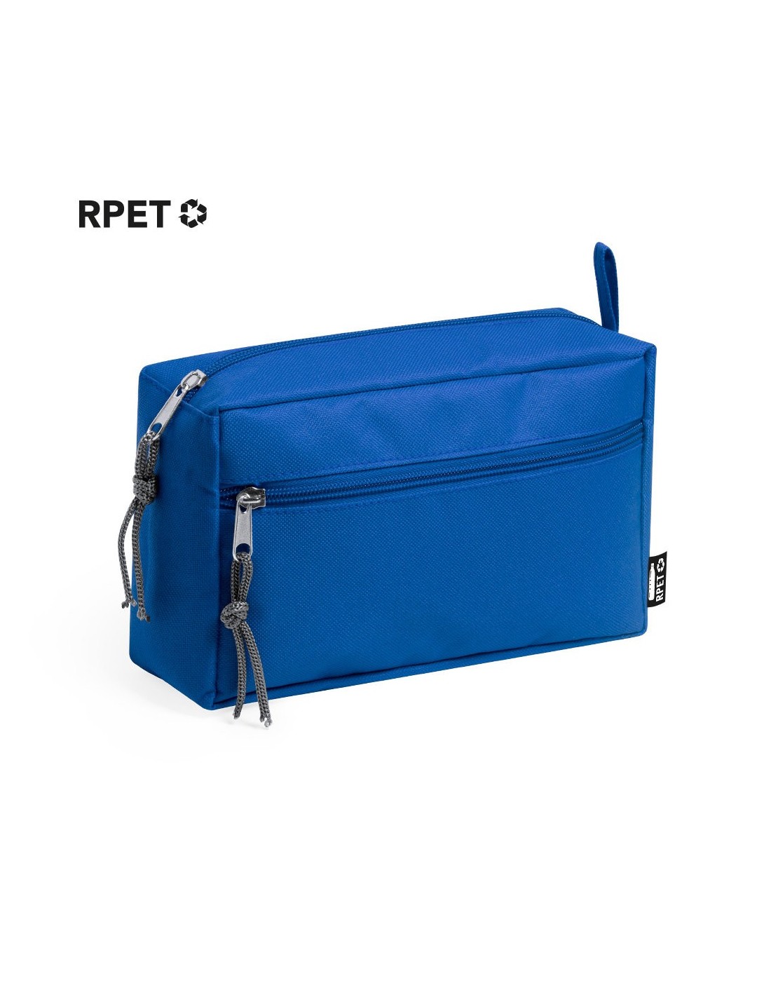 Neceser de línea nature en RPET, elaborado a partir de plástico reciclado, para así fomentar la reutilización de residuos plásticos y ayudar a la sostenibilidad del planeta. Compartimento principal y bolsillo frontal con cierre de cremallera, con cintas en tiradores para cómoda apertura. Asa de transporte a juego y distintivo RPET en etiqueta lateral. Disponible en variada gama de colores.