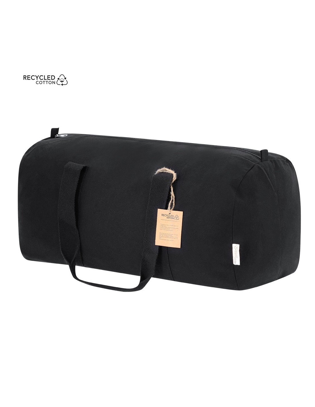 Bolso fabricado en material 100% canvas reciclado. Con resistentes asas alrededor del bolso y compartimento principal con cierre de cremallera. Etiqueta exterior con logotipo Algodón Reciclado.