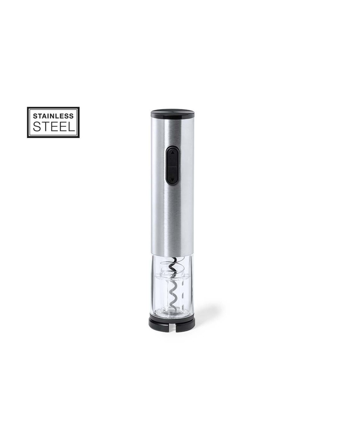 Sacacorchos eléctrico fabricado en acero inox y resistente ABS, con cortacápsulas incluido. Presentado en caja individual de diseño, con manual de instrucciones en español e inglés. Alimentación a pilas (4xAA no incluidas).