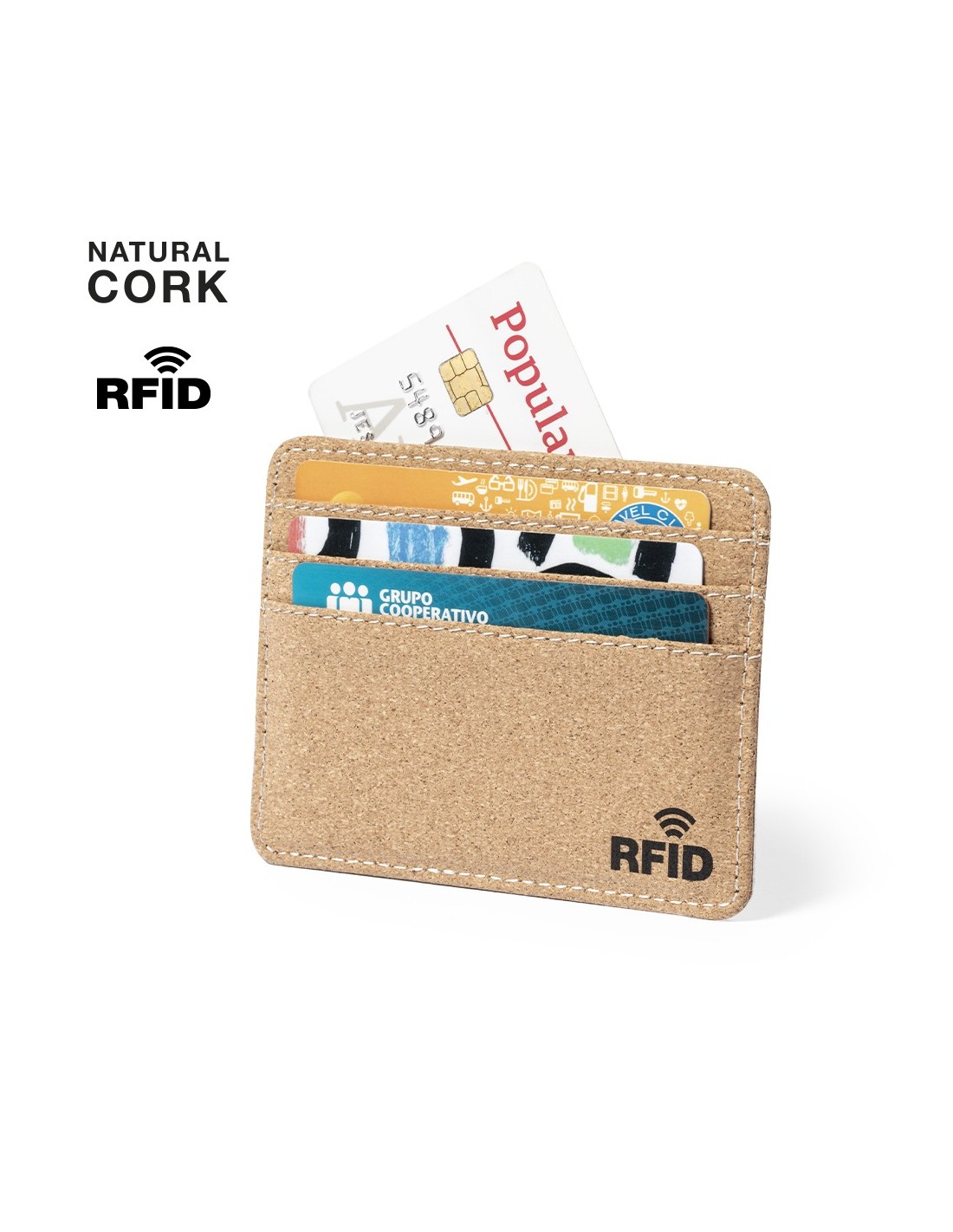 Elegante tarjetero fabricado en corcho natural. Con 6 compartimentos independientes para tarjetas y tecnología de seguridad RFID (Identificación por Radio Frecuencia) que mantiene seguros tus dispositivos de transmisión de identidad. Distintivo RFID en el exterior.
