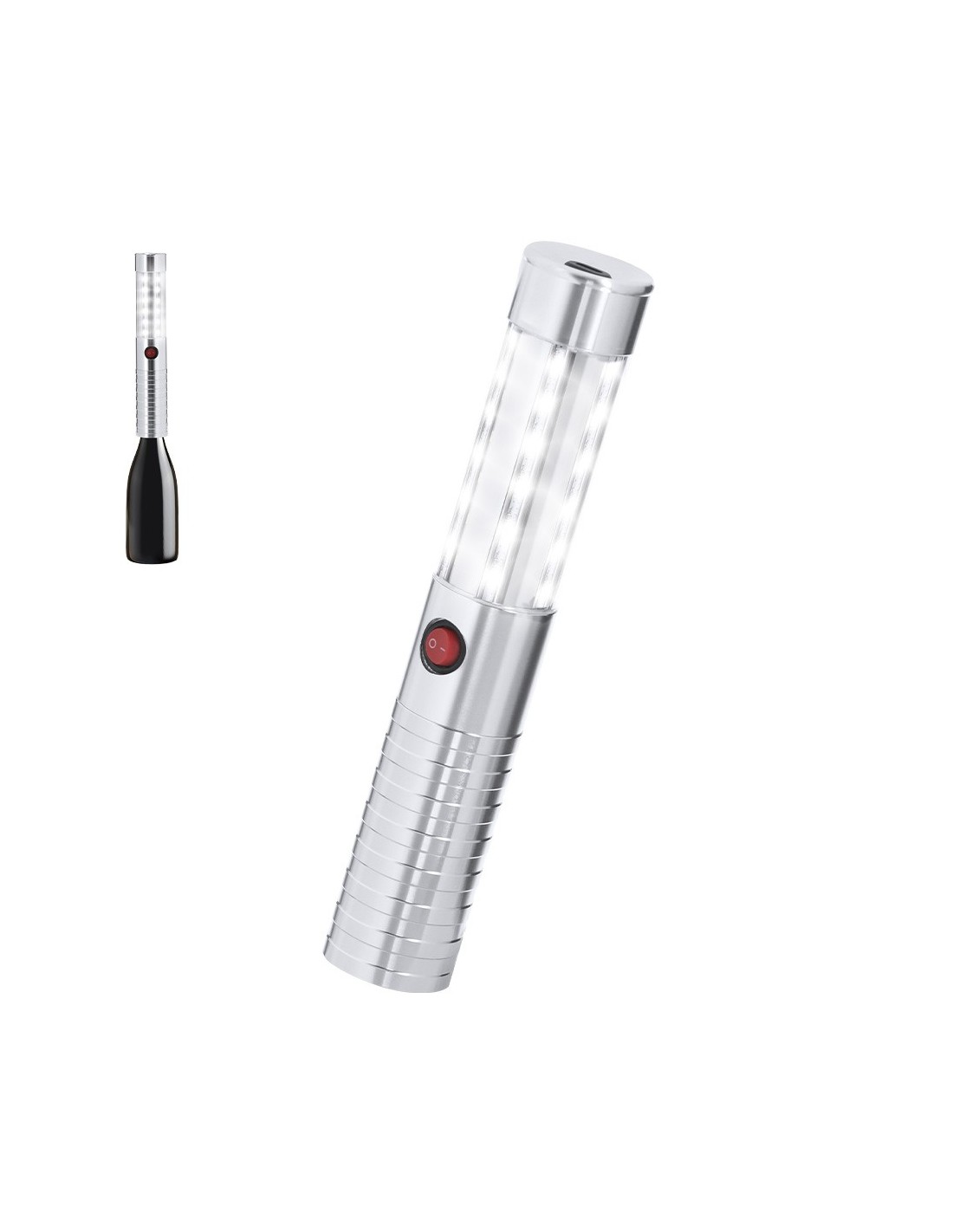 Bastón LED con 3 modos de luz: alta intensidad, media intensidad y luz intermitente. Equipado con 36 LEDs y botón de encendido/apagado. Su tamaño es ideal para acoplar en botellas, destacando en cualquier evento.