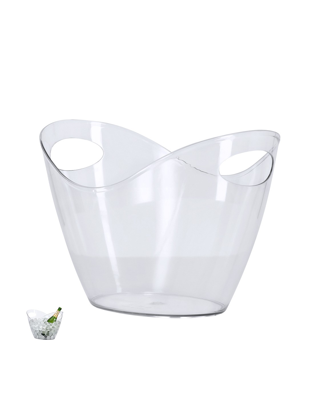 Elegante cubitera transparente de 4 l de capacidad fabricada en resistente PET. Este accesorio combina estilo y funcionalidad, manteniendo frías las bebidas por su gran tamaño.